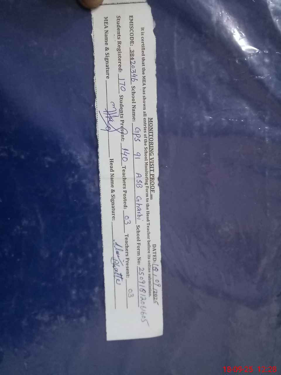 | Attendance Register | Head Teacher | MEA with School | Visit Proof |