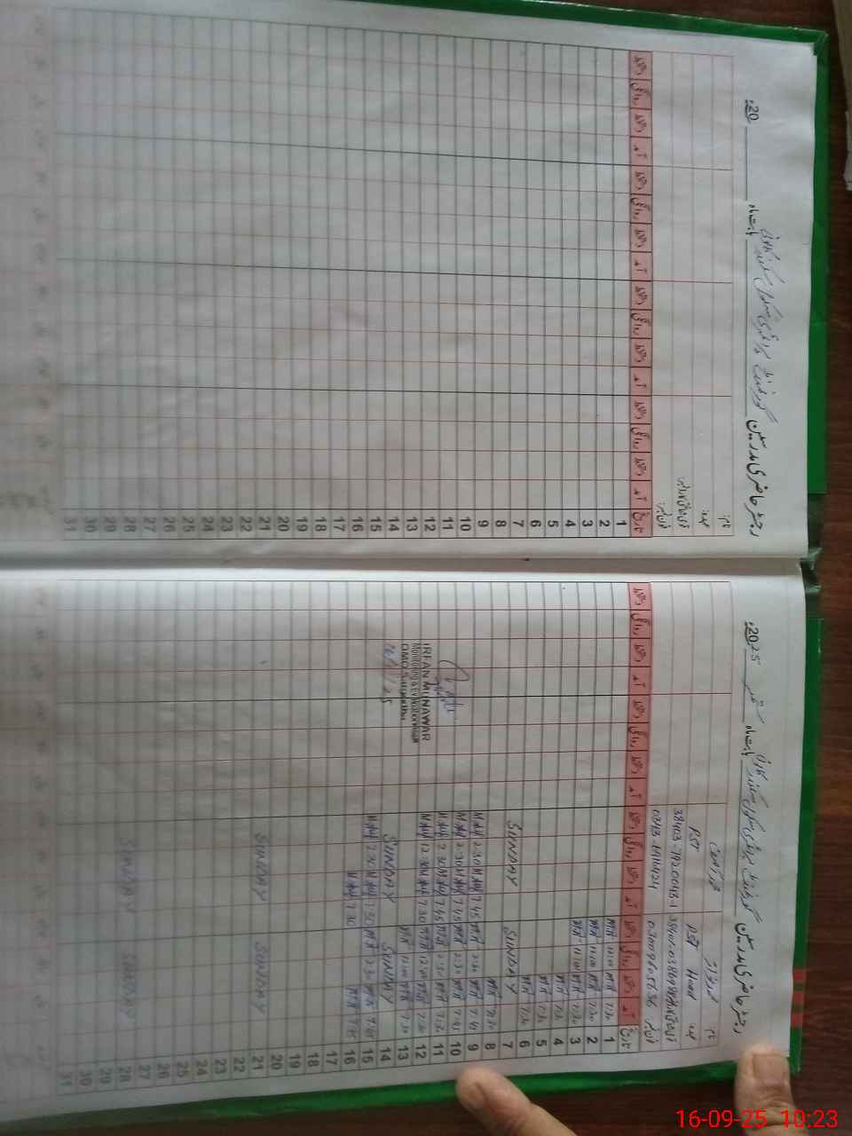 | CNIC | Full Name | Designation | R/C | Absence During Last Calender Month |