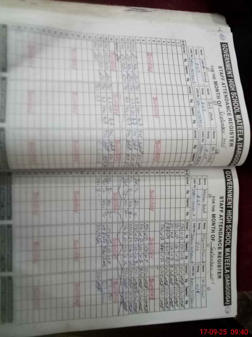 | CNIC | Full Name | Designation | R/C | Absence during last cal. month |