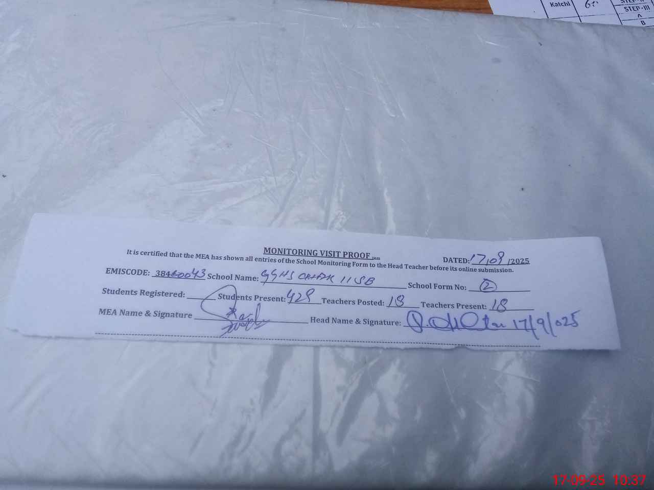 | EMIS Code: 38460043 | Name of School: GGHS CHAK NO.11 SB | |||