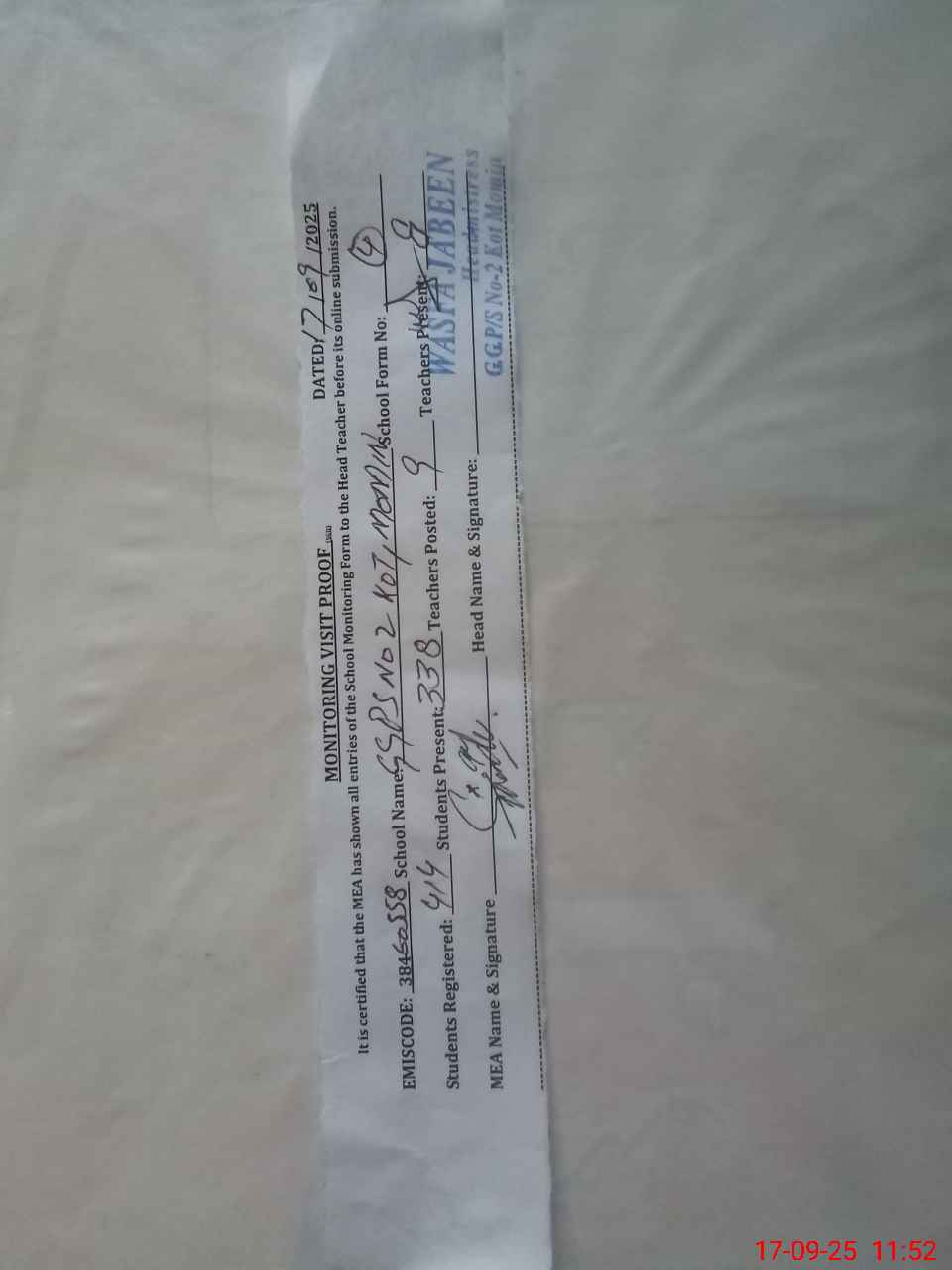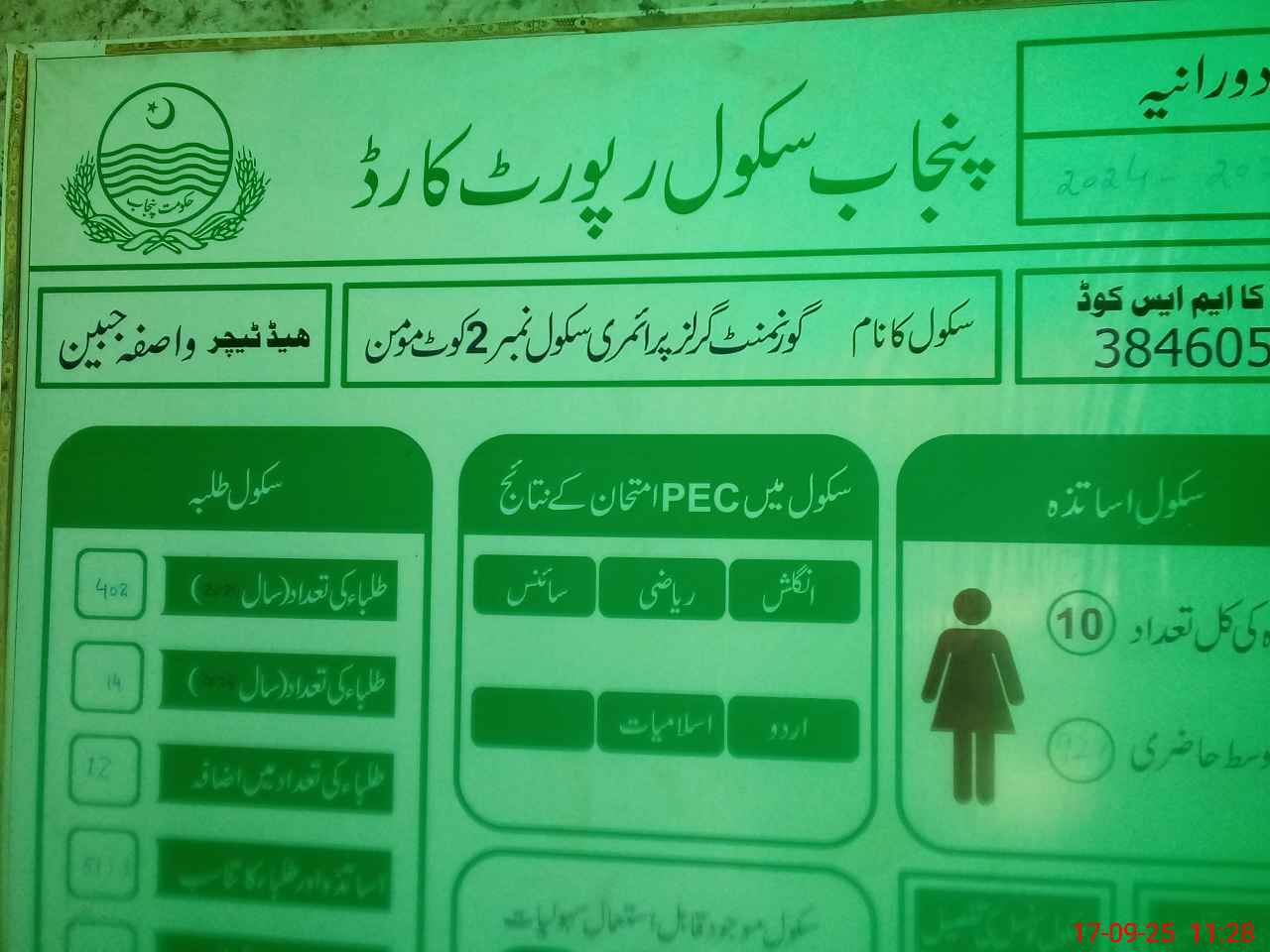 | EMIS Code: 38460558 | Name of School: GGPS NO. 2 KOT MOMIN | |||
