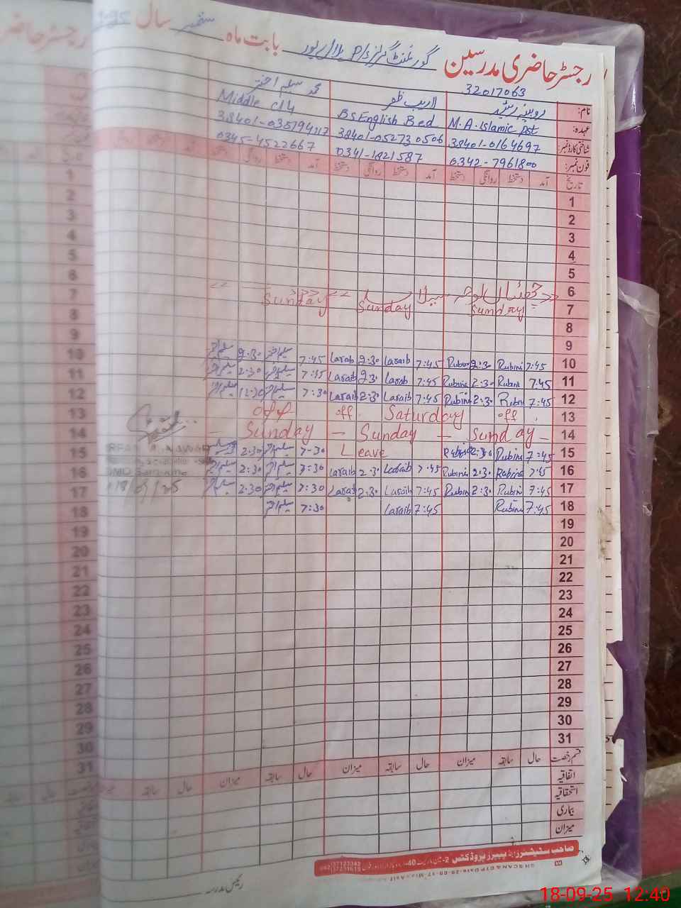 | Name: Ro**** Ra**** Designation: (School Headmaster's/Headmistress's) PST Phone/Cell Number: 03**** |