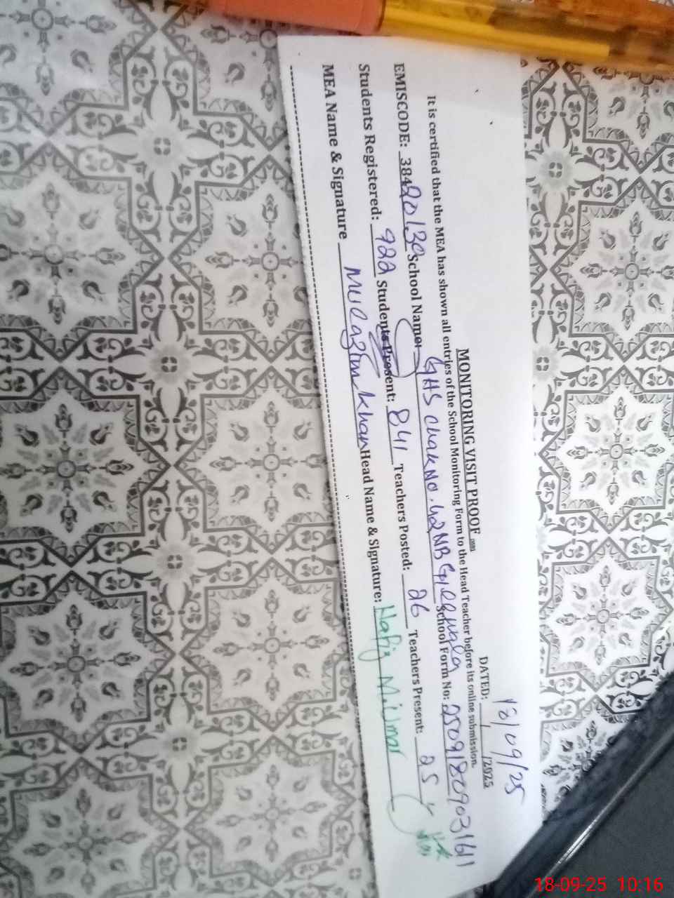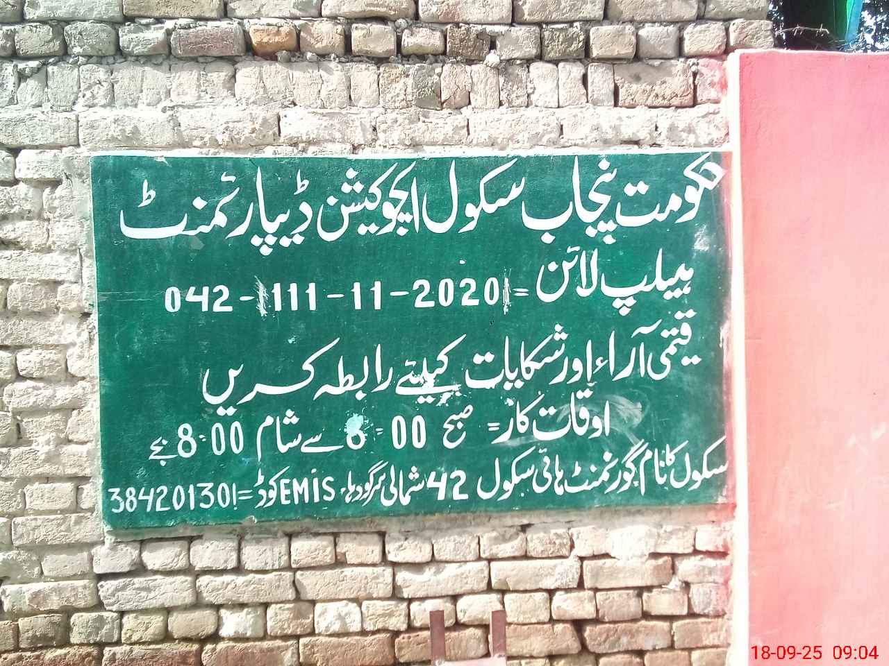 | EMIS Code: 38420130 | Name of School: GHS CHAK NO.42 NB GILL WALA | |||