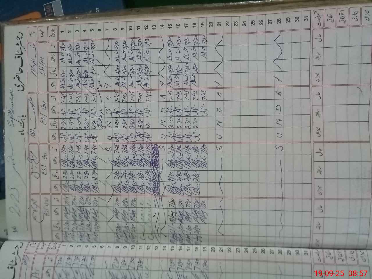 | CNIC | Full Name | Designation | R/C | Absence During Last Calender Month |