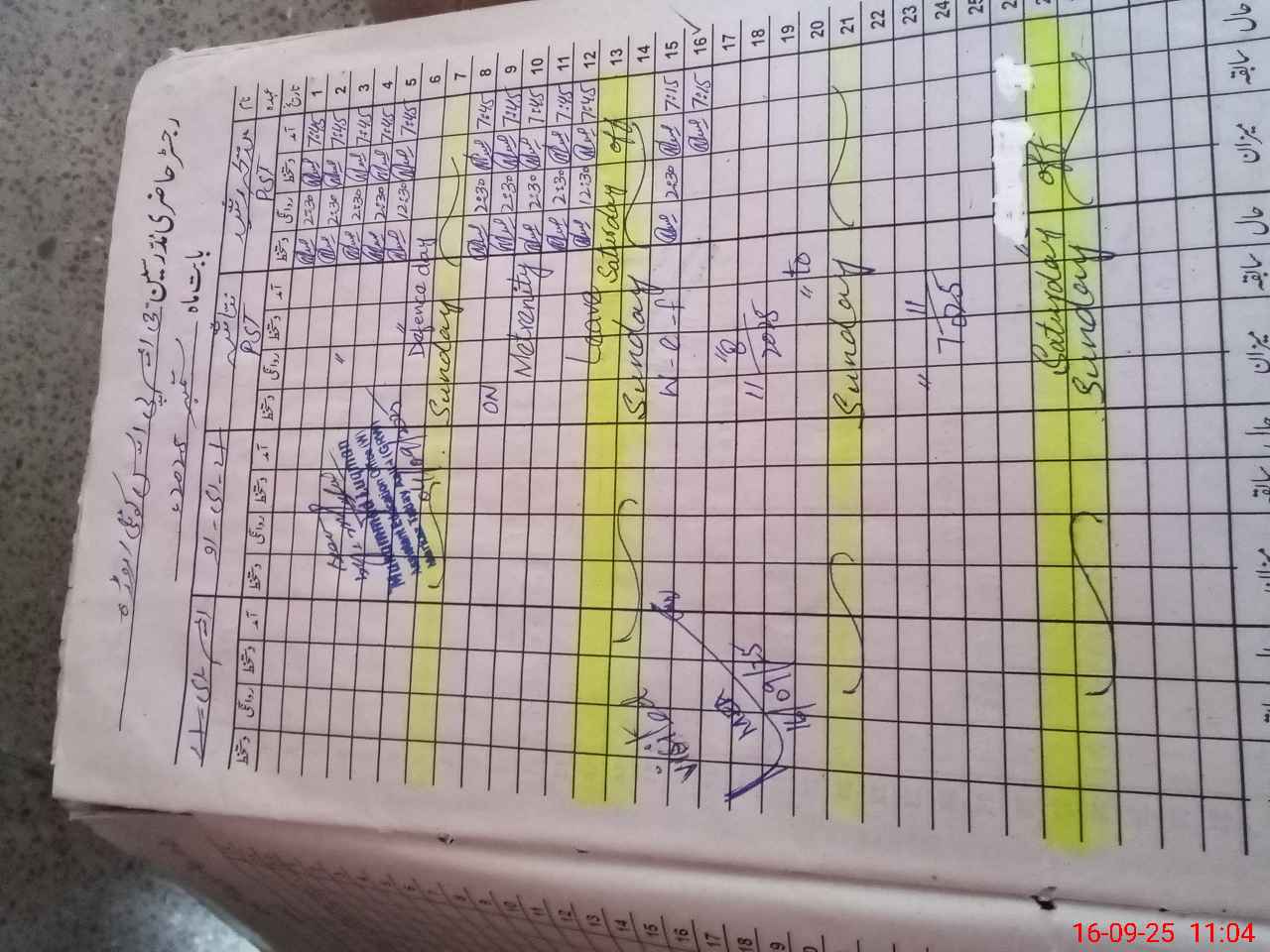 | CNIC | Full Name | Designation | R/C | Absence During Last Calender Month |