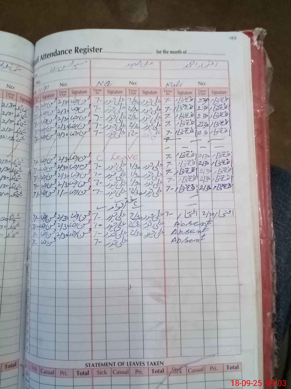 | Leave | Duty | Absent | Maternity | Medical | Ex- Pak |