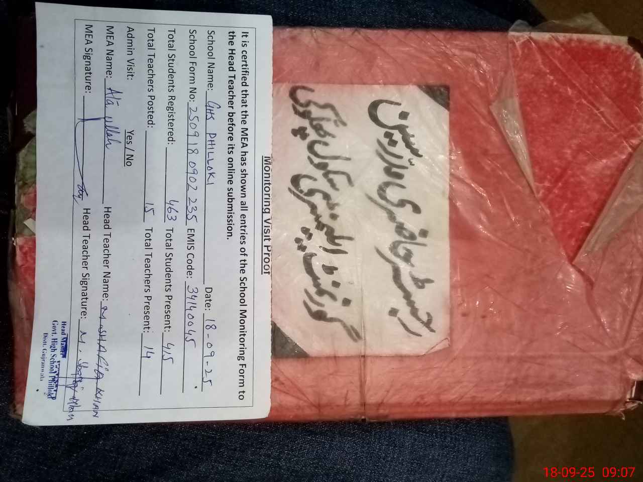 | Name: M.IQ**** Designation: (School Headmaster's/Headmistress's) S.S.T. G Phone/Cell Number: 03**** |