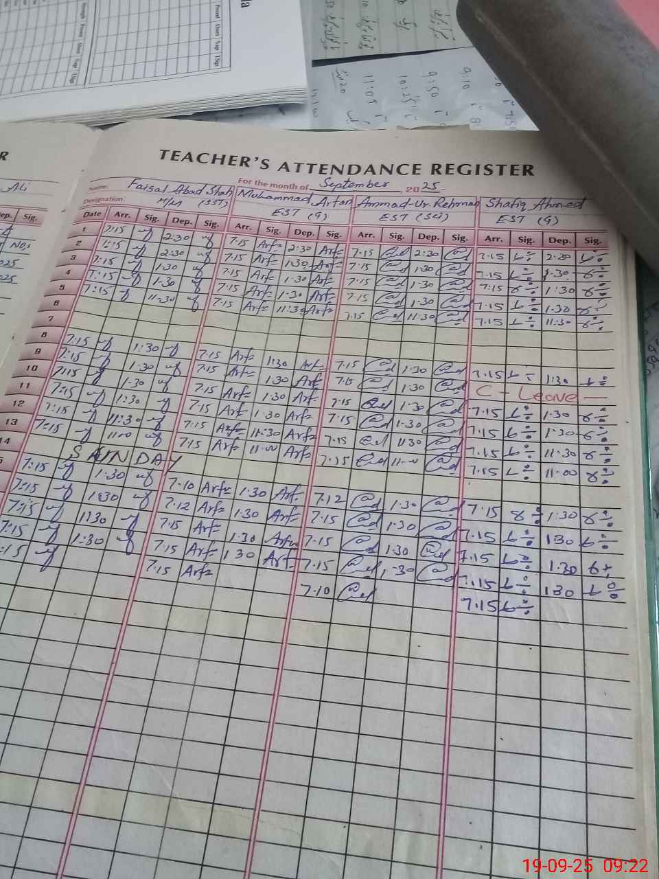 | CNIC | Full Name | Designation | R/C | Absence during last cal. month |