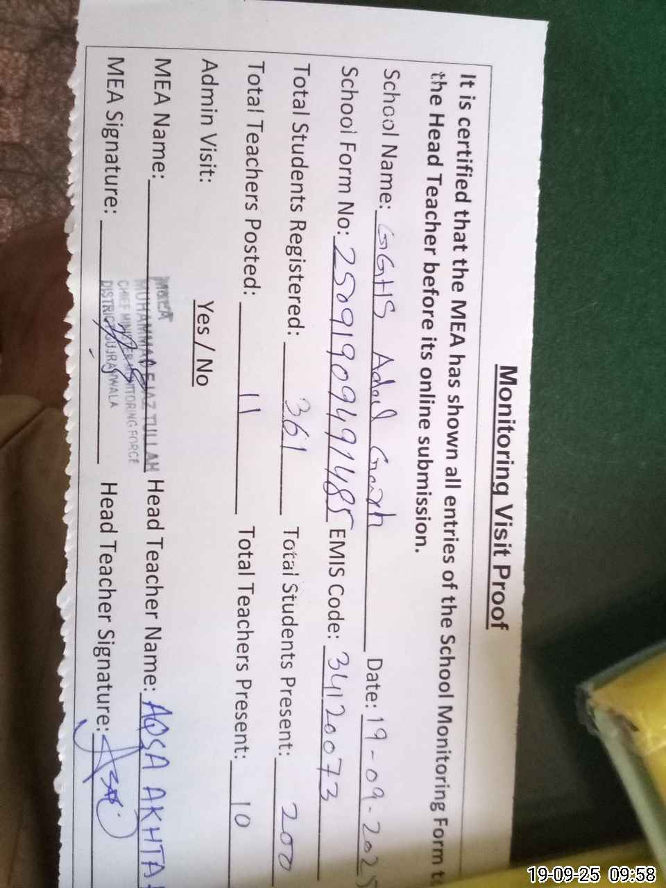 | EMIS Code: 34120073 | Name of School: GGHS ADIL GARH | |||