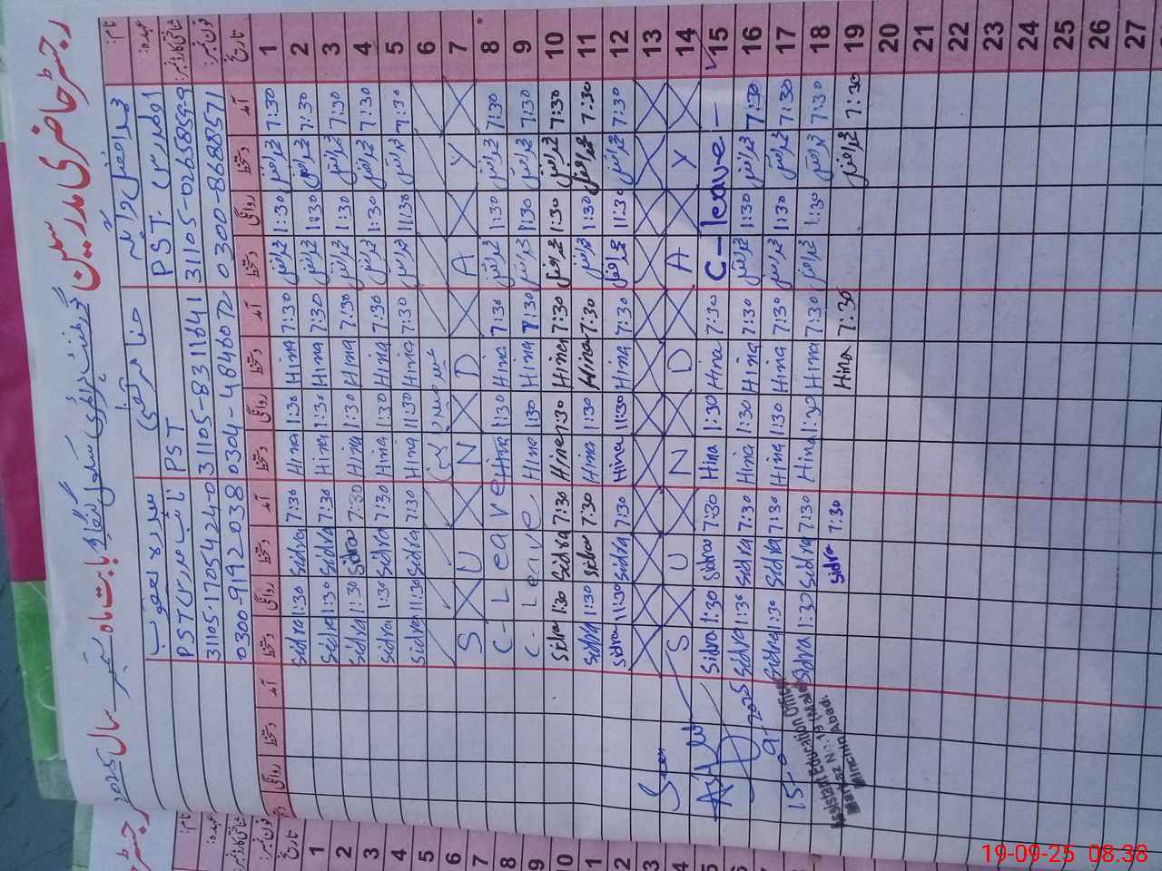 | CNIC | Full Name | Designation | R/C | Absence During Last Calender Month |
