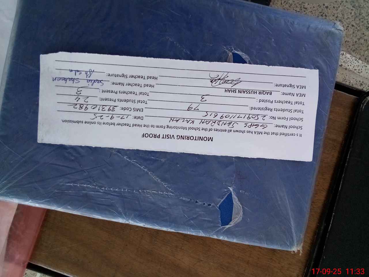 | Attendance Register | Head Teacher | MEA with School | Visit Proof |