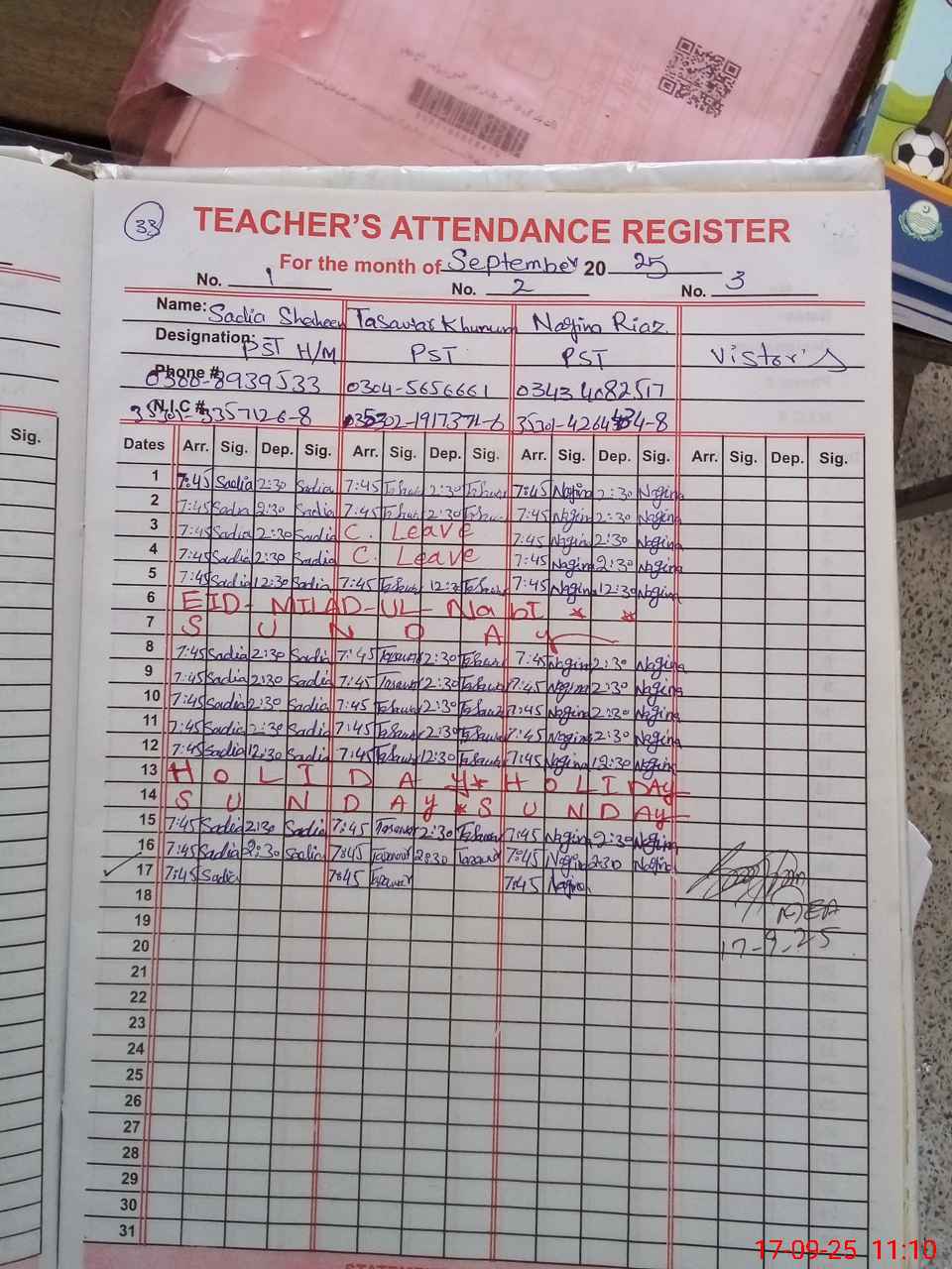 | Name: Sa**** Sh**** Designation: (School Headmaster's/Headmistress's) PST Phone/Cell Number: 03**** |