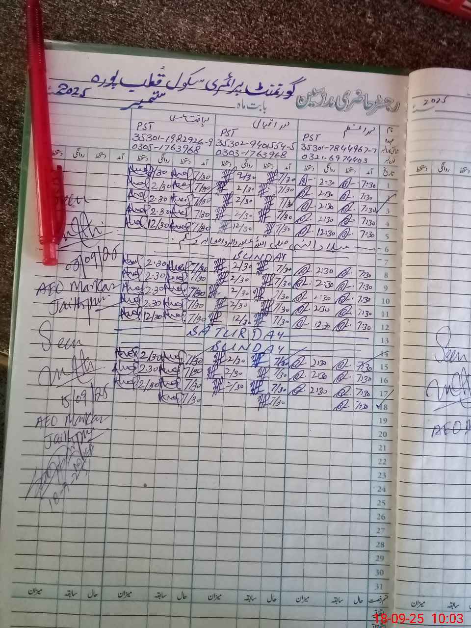 | Name: MU**** Az**** Designation: (School Headmaster's/Headmistress's) PTC/JV Phone/Cell Number: 03**** |