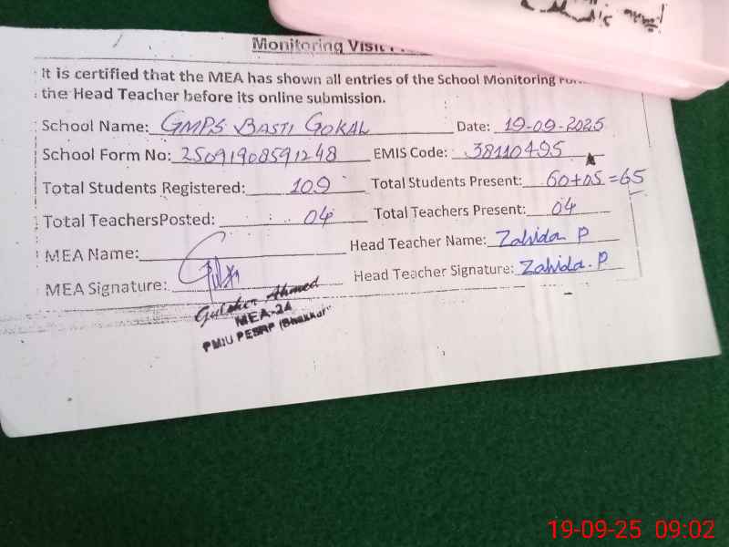 | EMIS Code: 38110495 | Name of School: GMPS BASTI GOKAL | |||