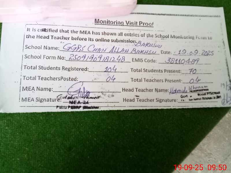 | EMIS Code: 38110489 | Name of School: GGPS CHAH ALLAH BAKHSH BASKHSHU WALA | |||