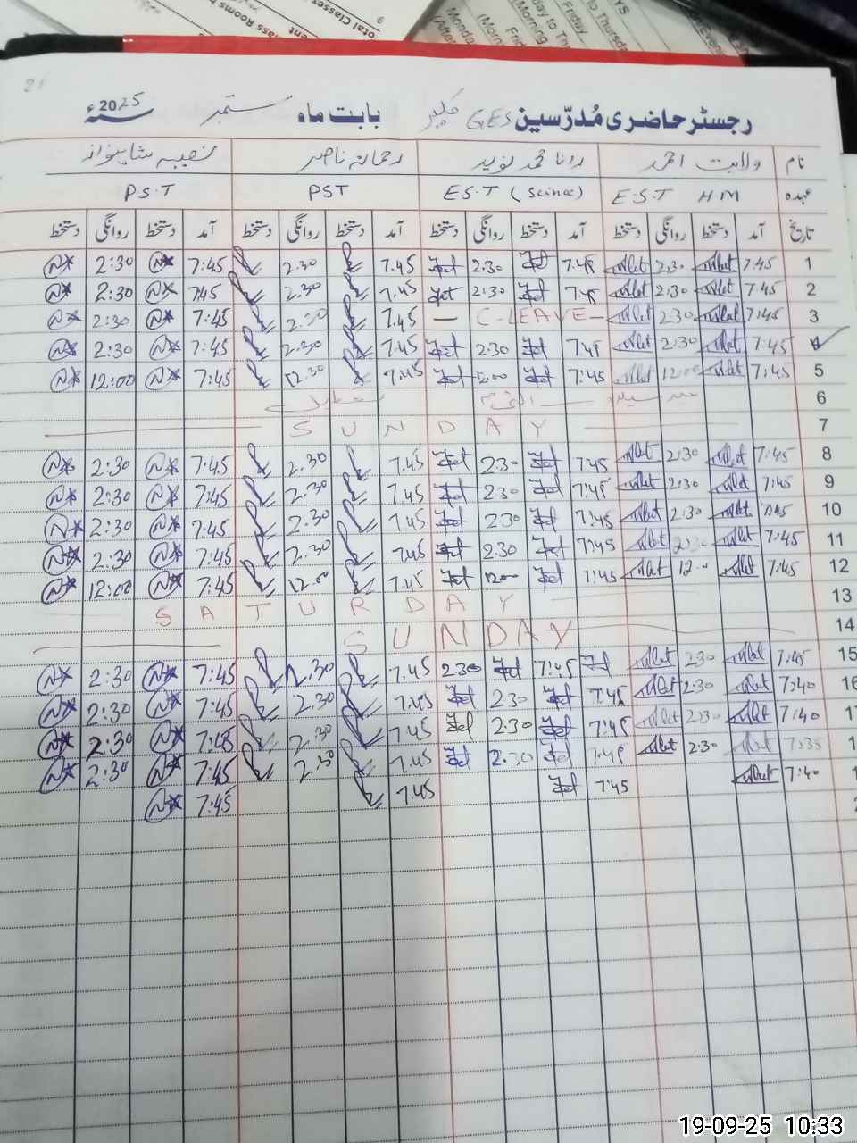 | Name: Ra**** Al**** Designation: (School Headmaster's/Headmistress's) EST Phone/Cell Number: 03**** |
