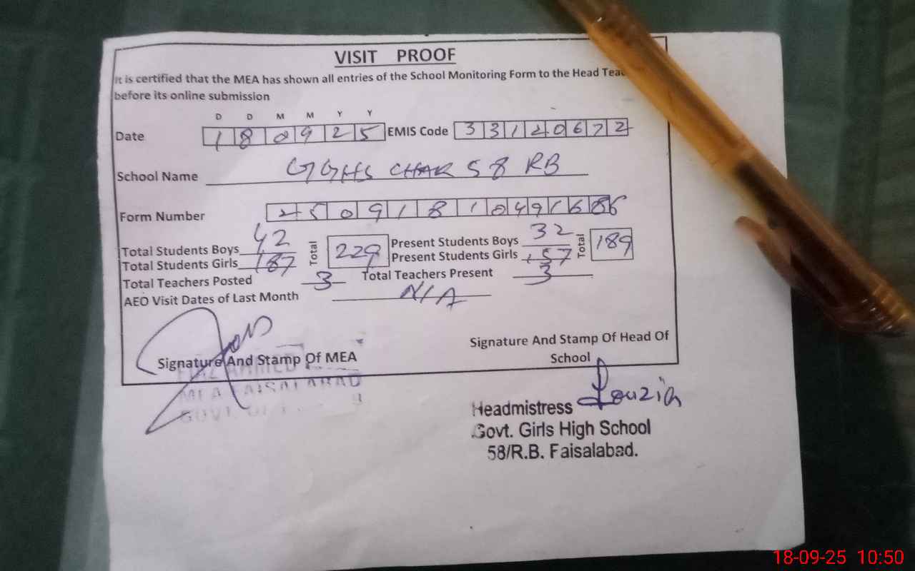 | EMIS Code: 33120672 | Name of School: GGHS CHAK NO 58 RB | |||