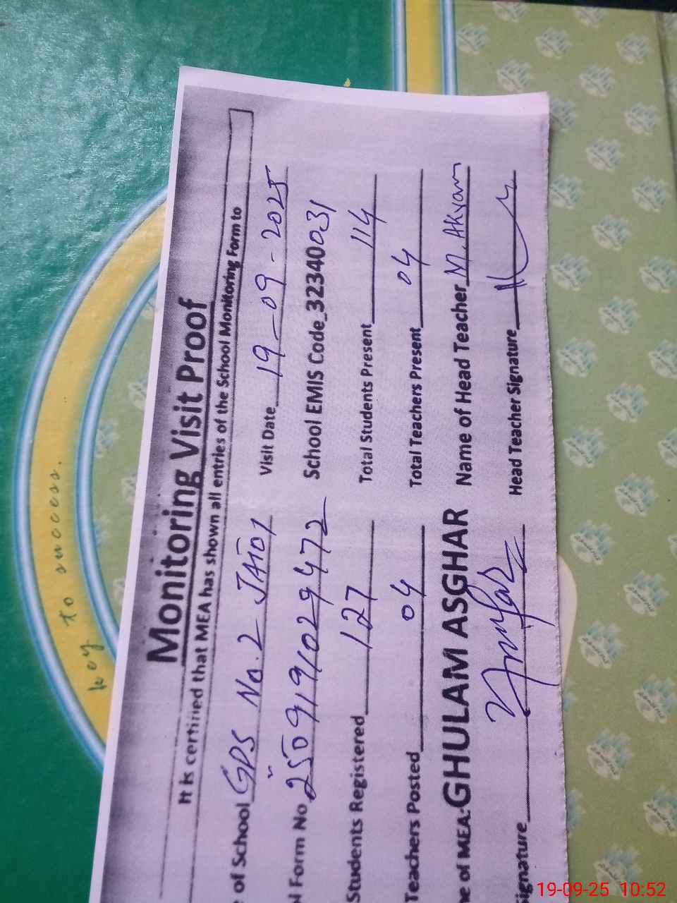 | EMIS Code: 32340031 | Name of School: GPS NO. 2 JATOI | |||