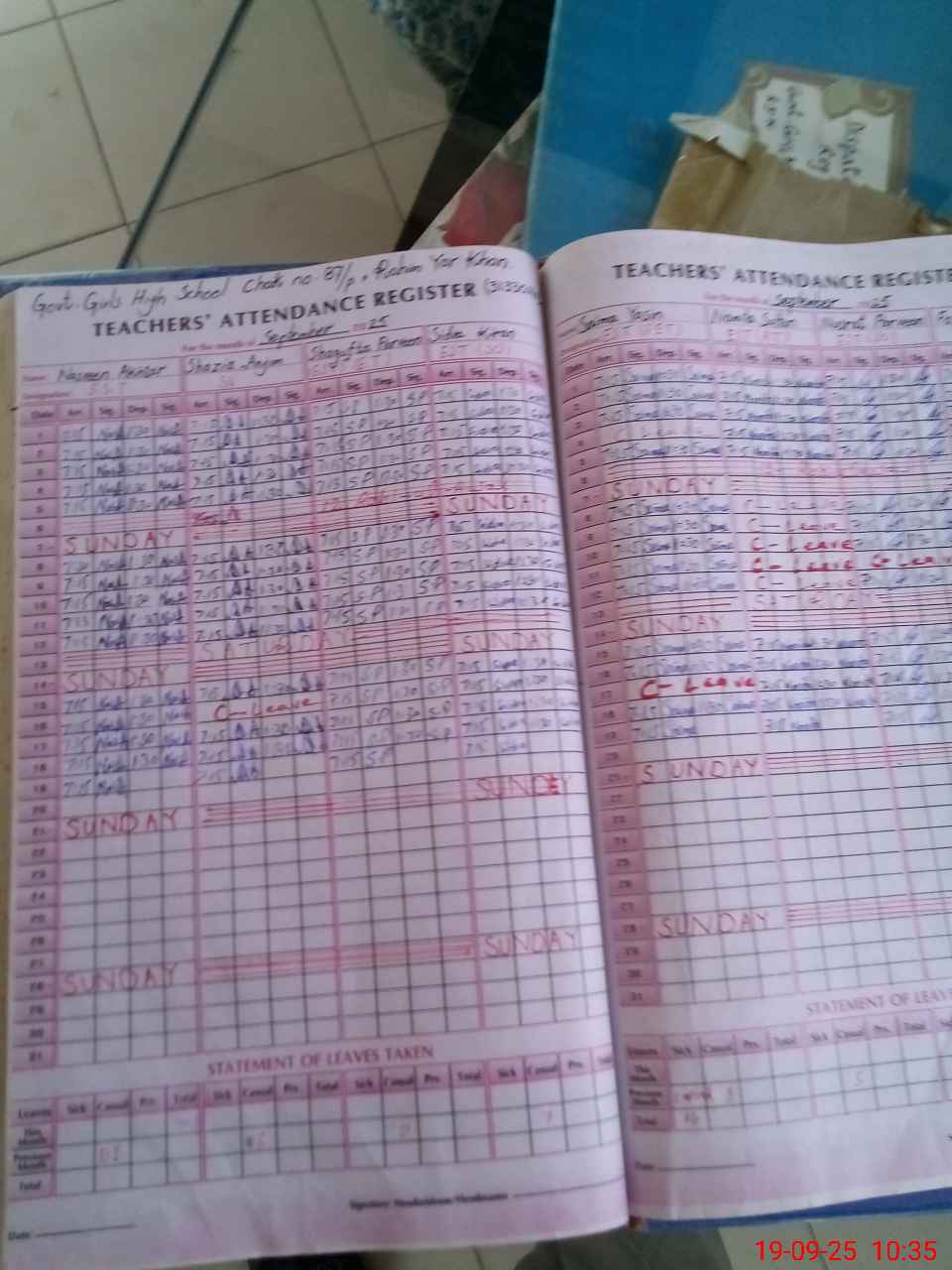 | Leave | Duty | Absent | Maternity | Medical | Ex- Pak |