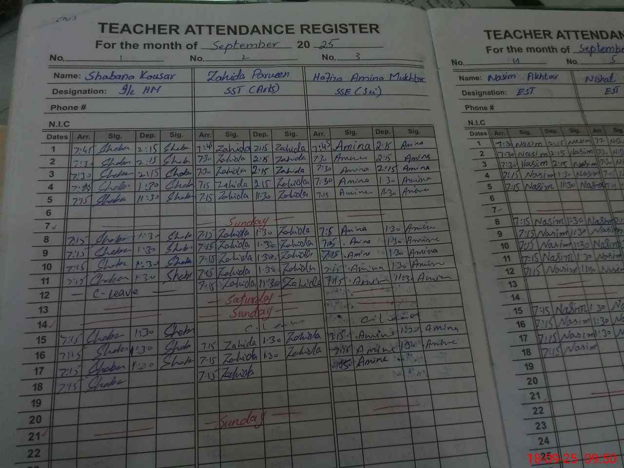 | CNIC | Full Name | Designation | R/C | Absence During Last Calender Month |