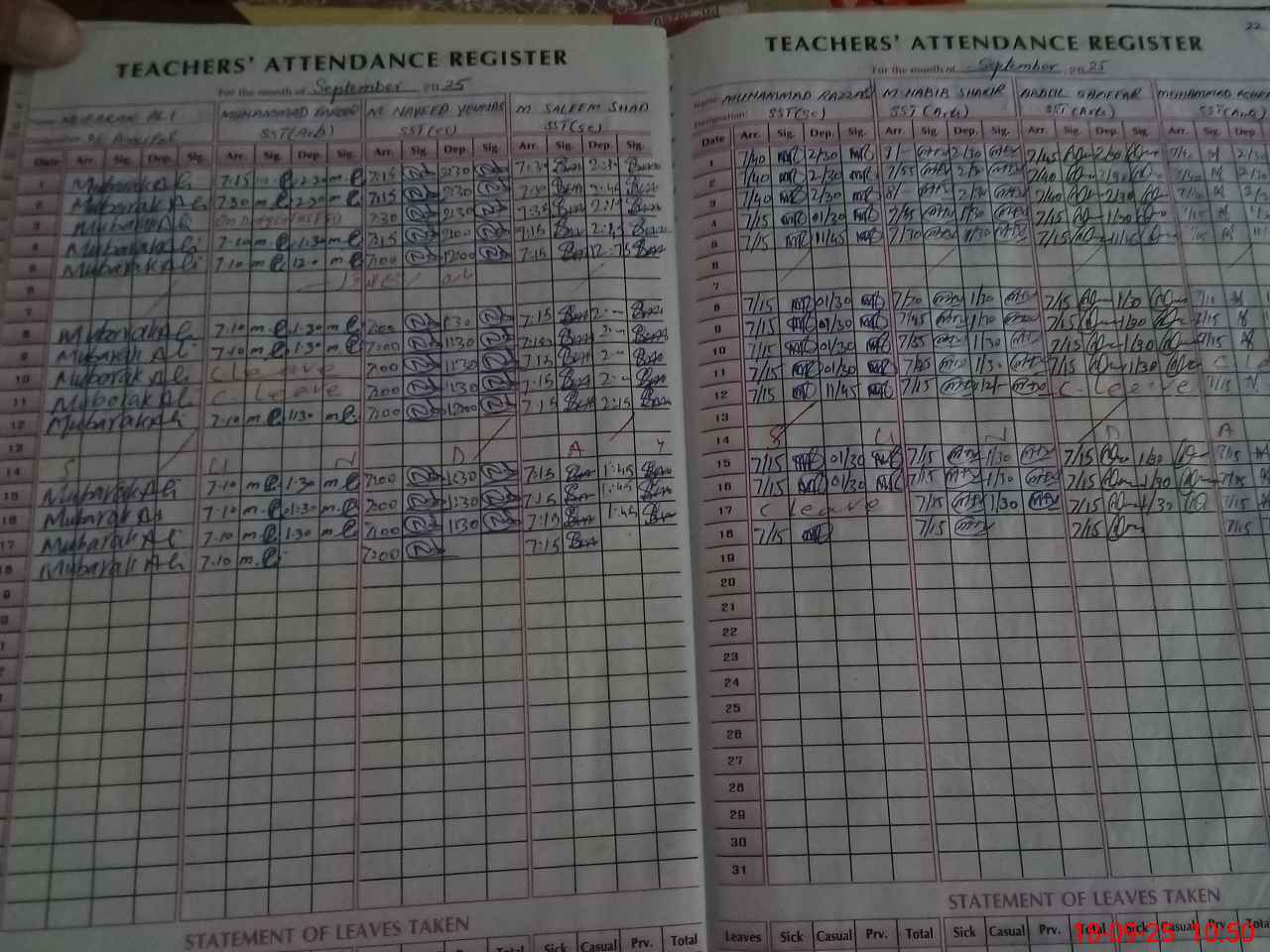 | CNIC | Full Name | Designation | R/C | Absence During Last Calender Month |