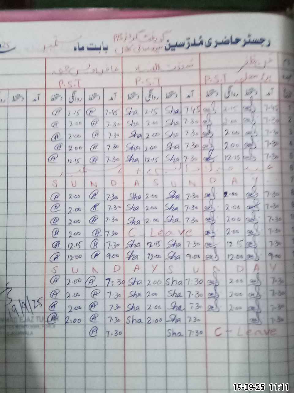 | Name: Sa**** Za**** Designation: (School Headmaster's/Headmistress's) PST/BED Phone/Cell Number: 03**** |