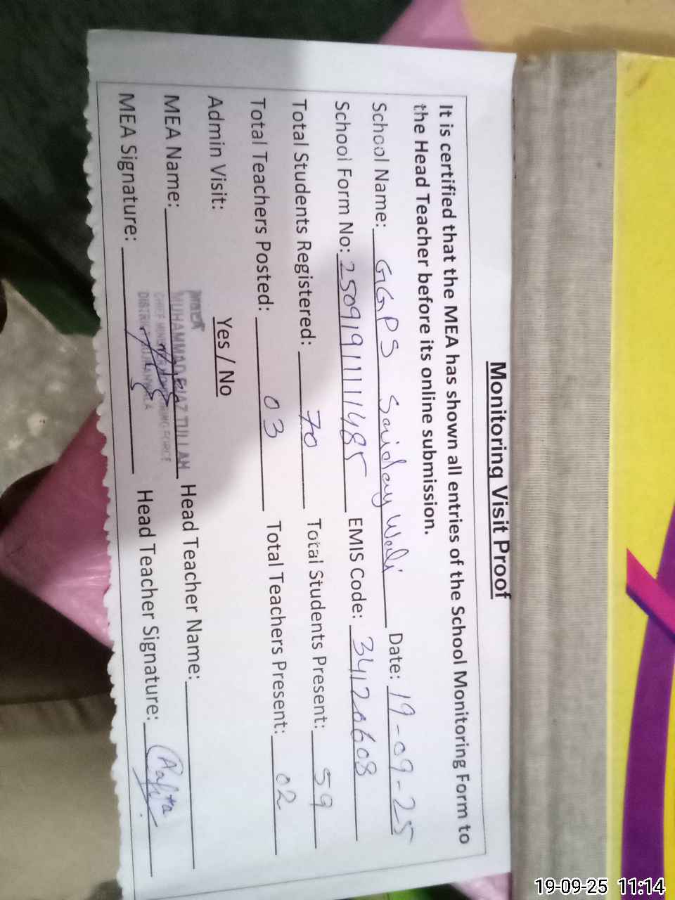 | EMIS Code: 34120608 | Name of School: GGPS SAIDY WALI KALAN | |||