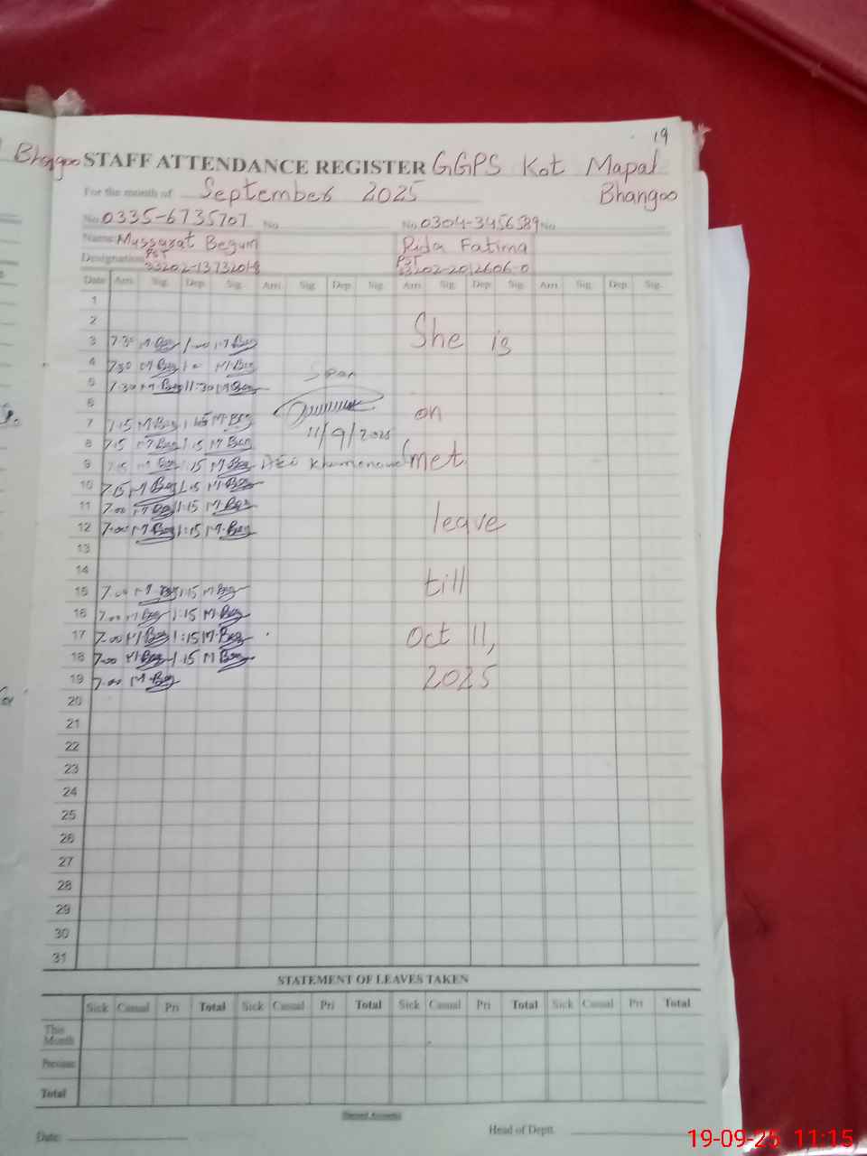 | EMIS Code: 33230577 | Name of School: GGPS KOT MAPAL BHANGOO | |||