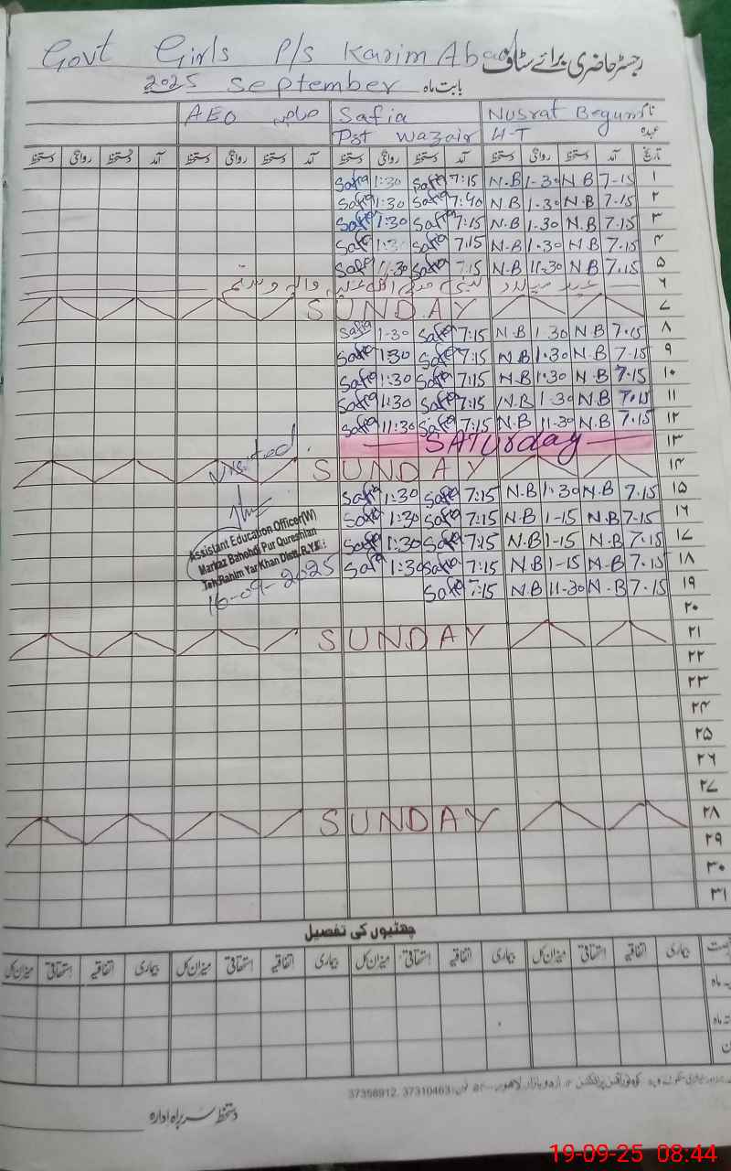 | District: RAHIMYAR KHAN | Tehsil: RAHIMYAR KHAN | Markaz: BAHODIPUR QURESHIAN-FEMALE | Level: Primary | |