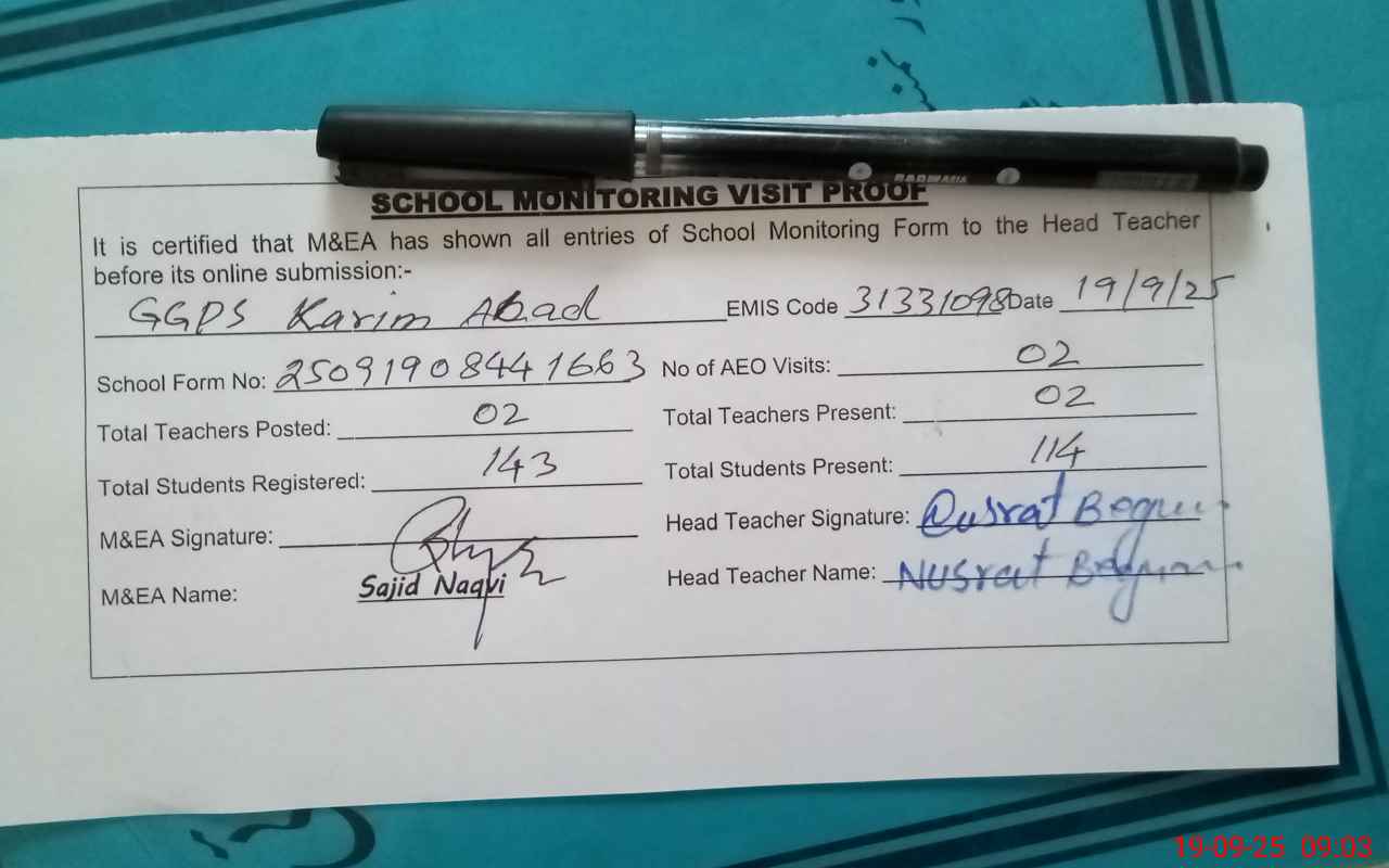 | EMIS Code: 31331098 | Name of School: GGPS KARIM ABAD | |||