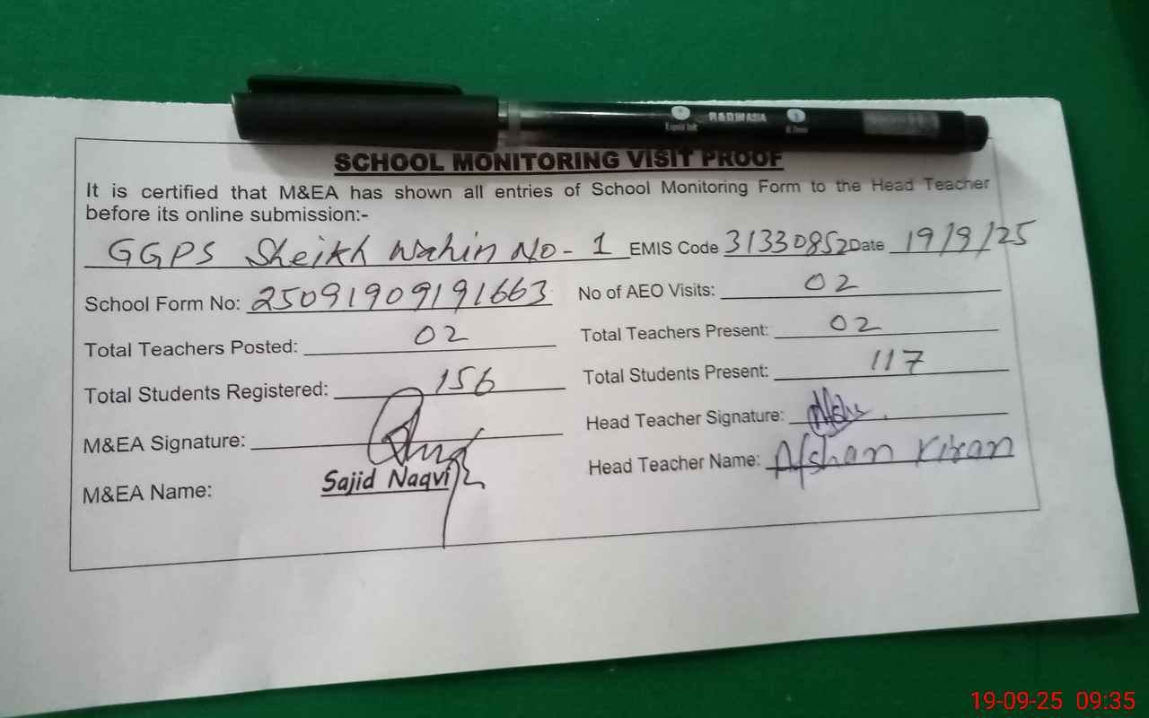 | EMIS Code: 31330852 | Name of School: GGPS SHEIKH WAHIN NO. 1 | |||