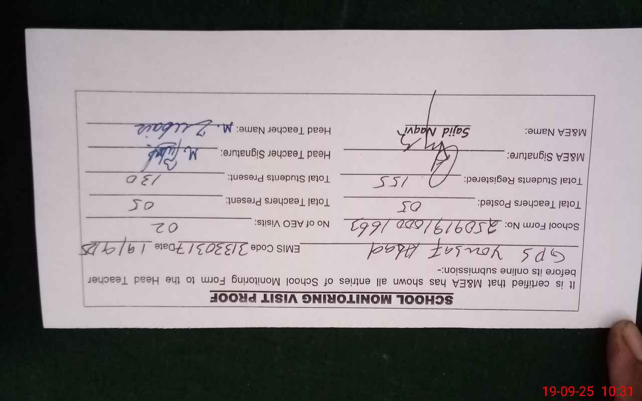 | Certified that this School was Inspected by the Undersigned MEA/DMO Today and the Information Stated Above is as Per Record. | |||||