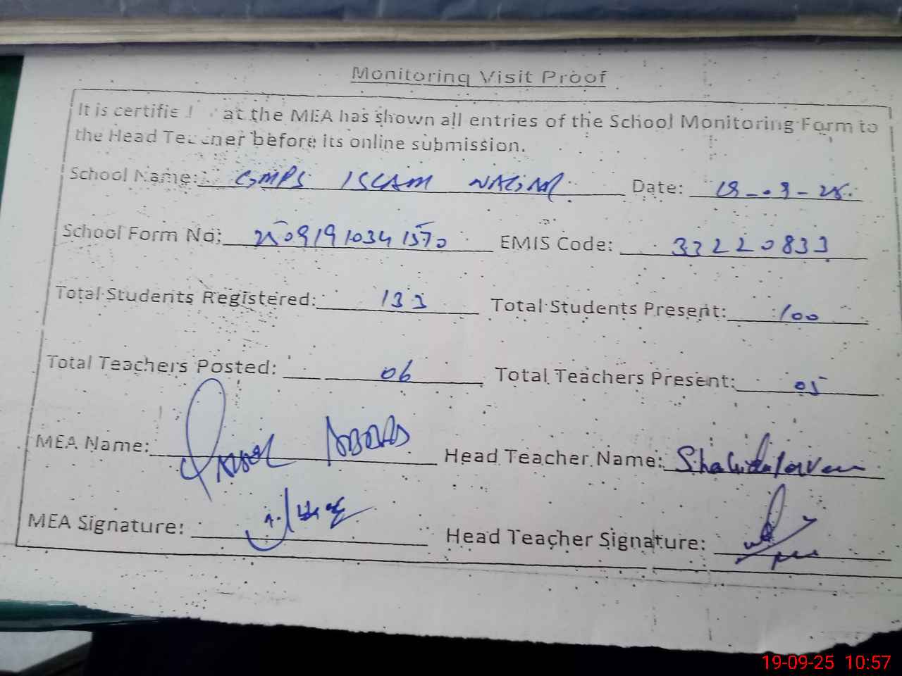 | EMIS Code: 33220833 | Name of School: GMPS ISLAM NAGAR | |||