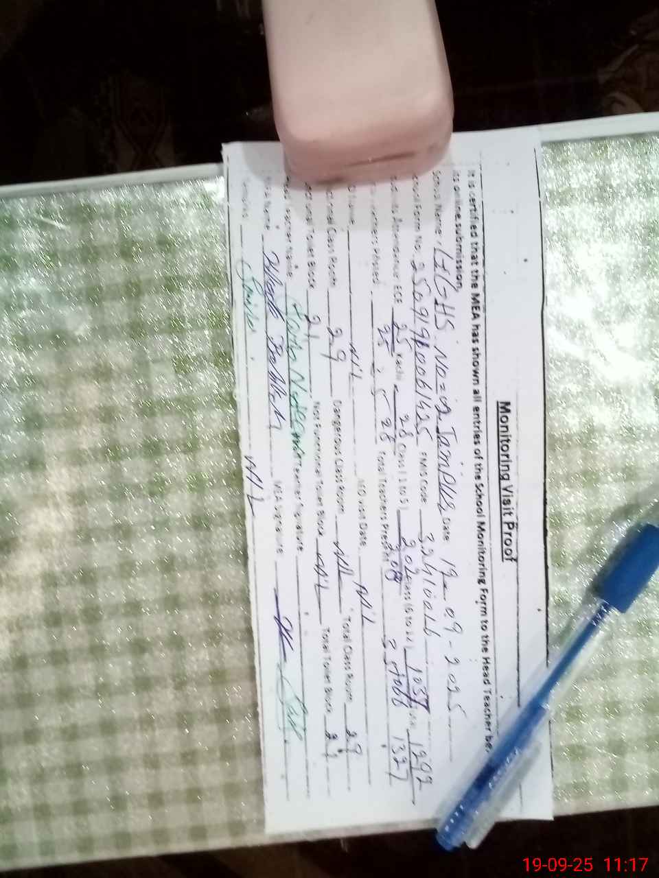 | Attendance Register | Head Teacher | MEA with School | Visit Proof |