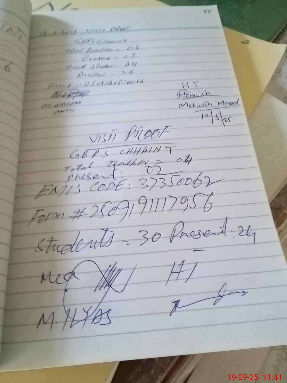 | Attendance Register | Head Teacher | MEA with School | Visit Proof |