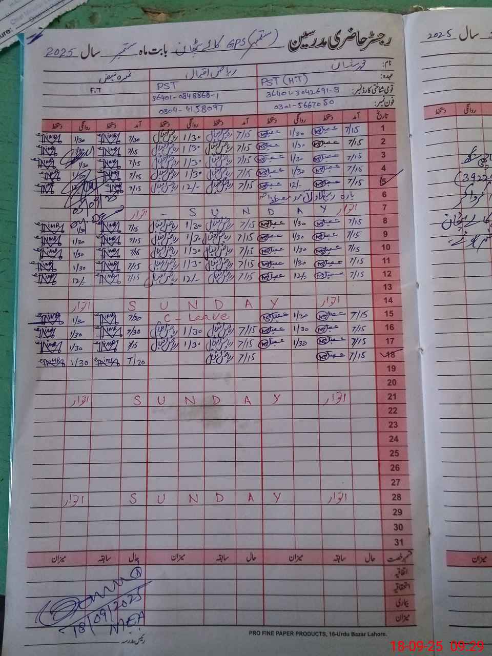 | Name: MU**** SH**** Designation: (School Headmaster's/Headmistress's) PST Phone/Cell Number: 03**** |