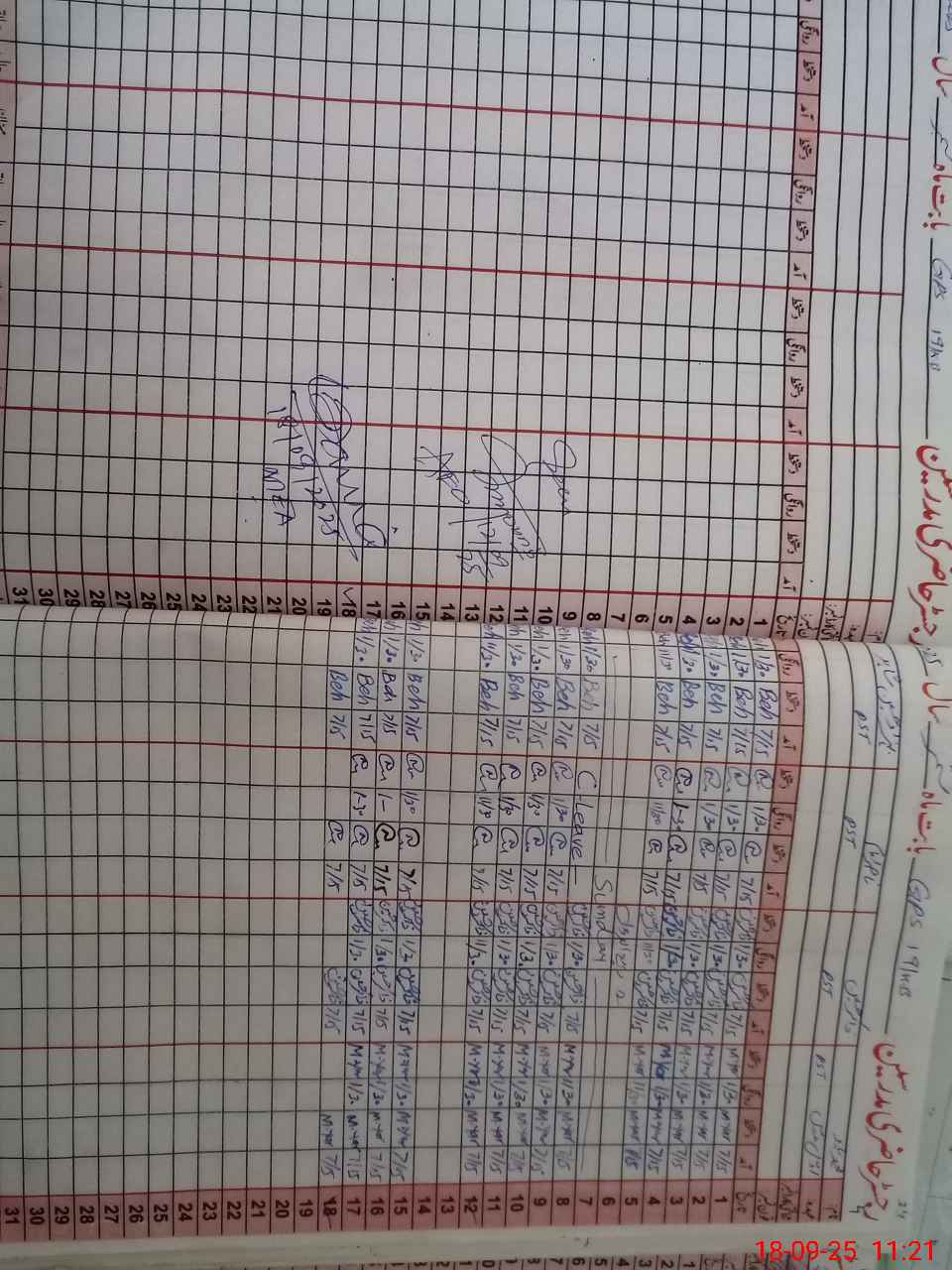 | CNIC | Full Name | Designation | R/C | Absence During Last Calender Month |