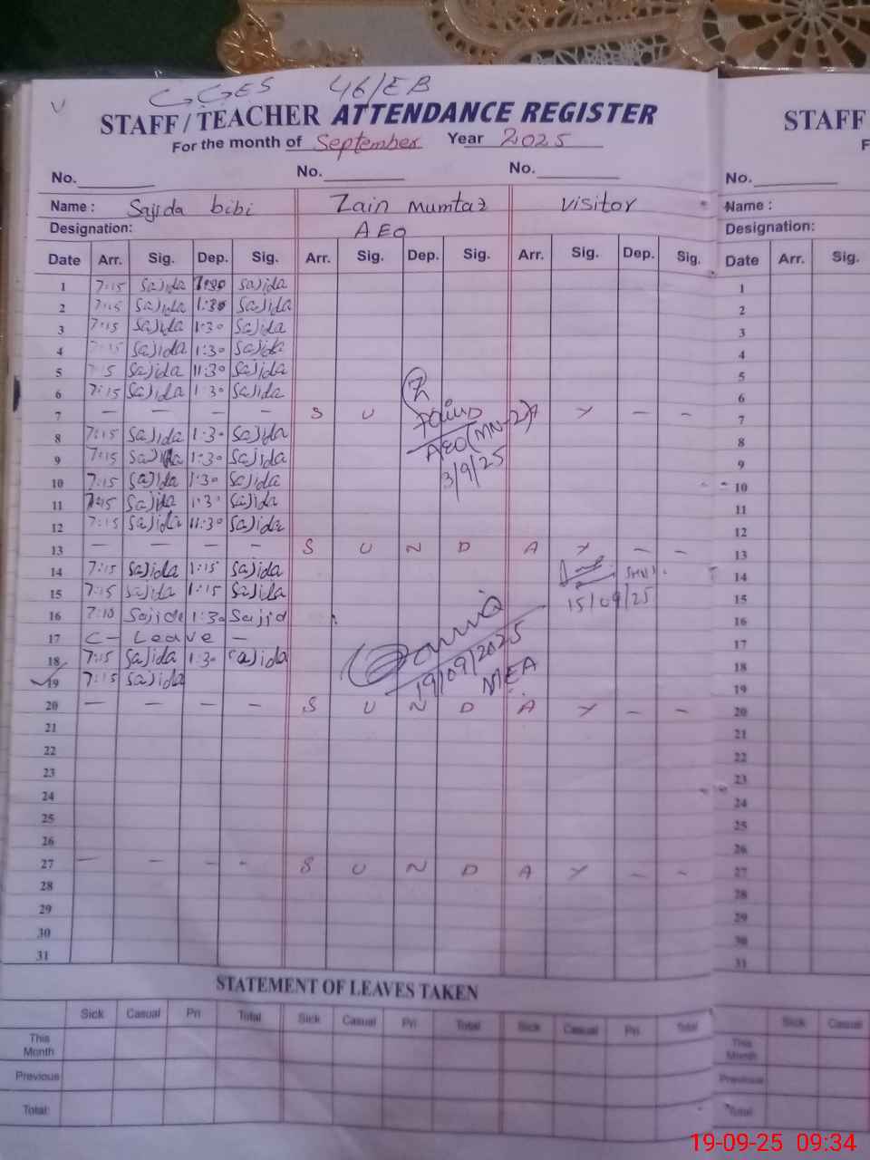 | Attendance Register | Head Teacher | MEA with School | Visit Proof |