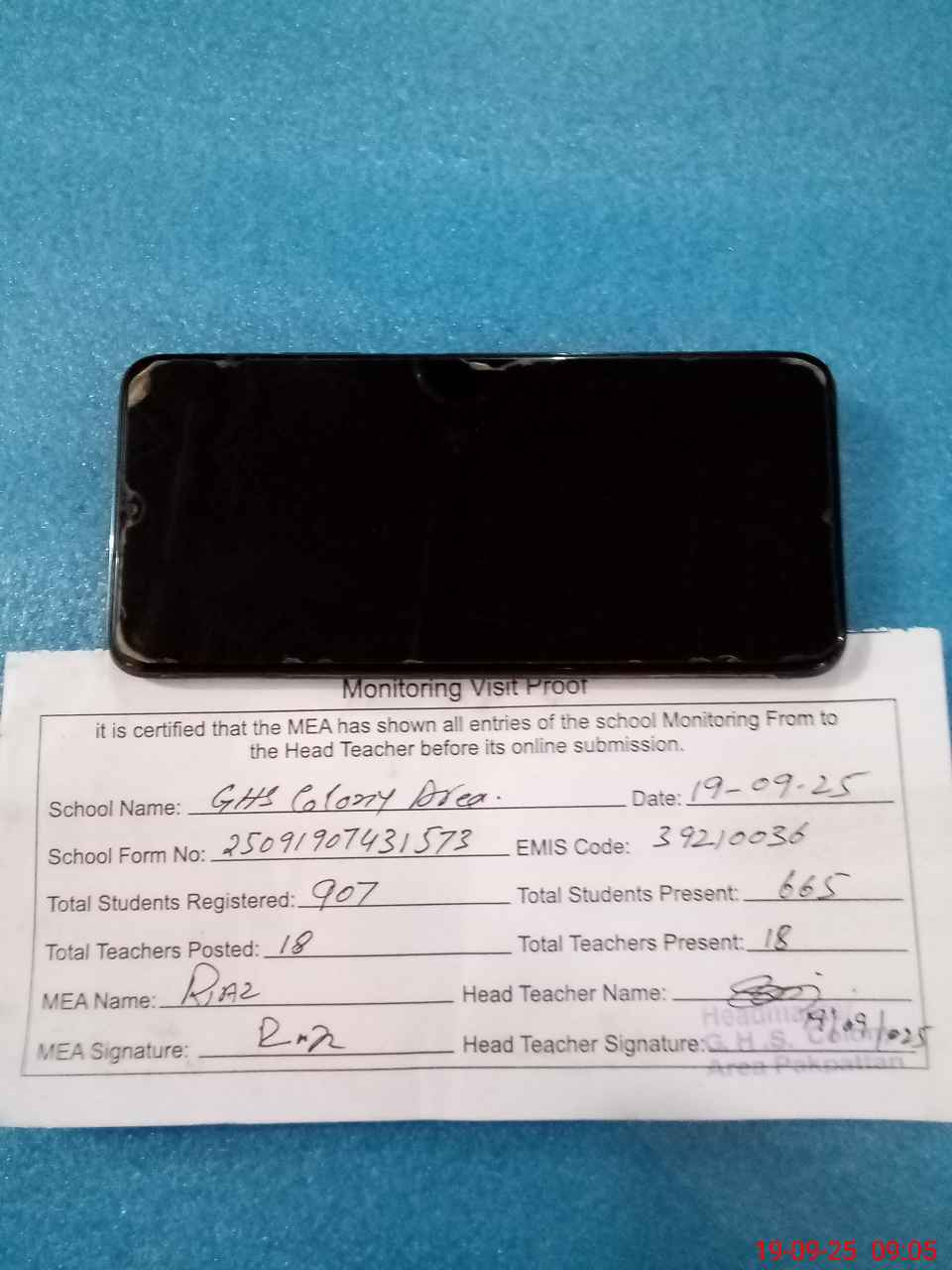 | EMIS Code: 39210036 | Name of School: GHS COLONY AREA PAKPATTAN | |||