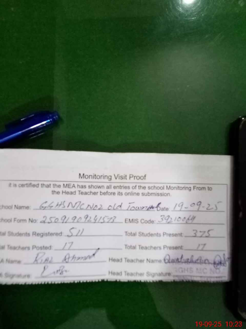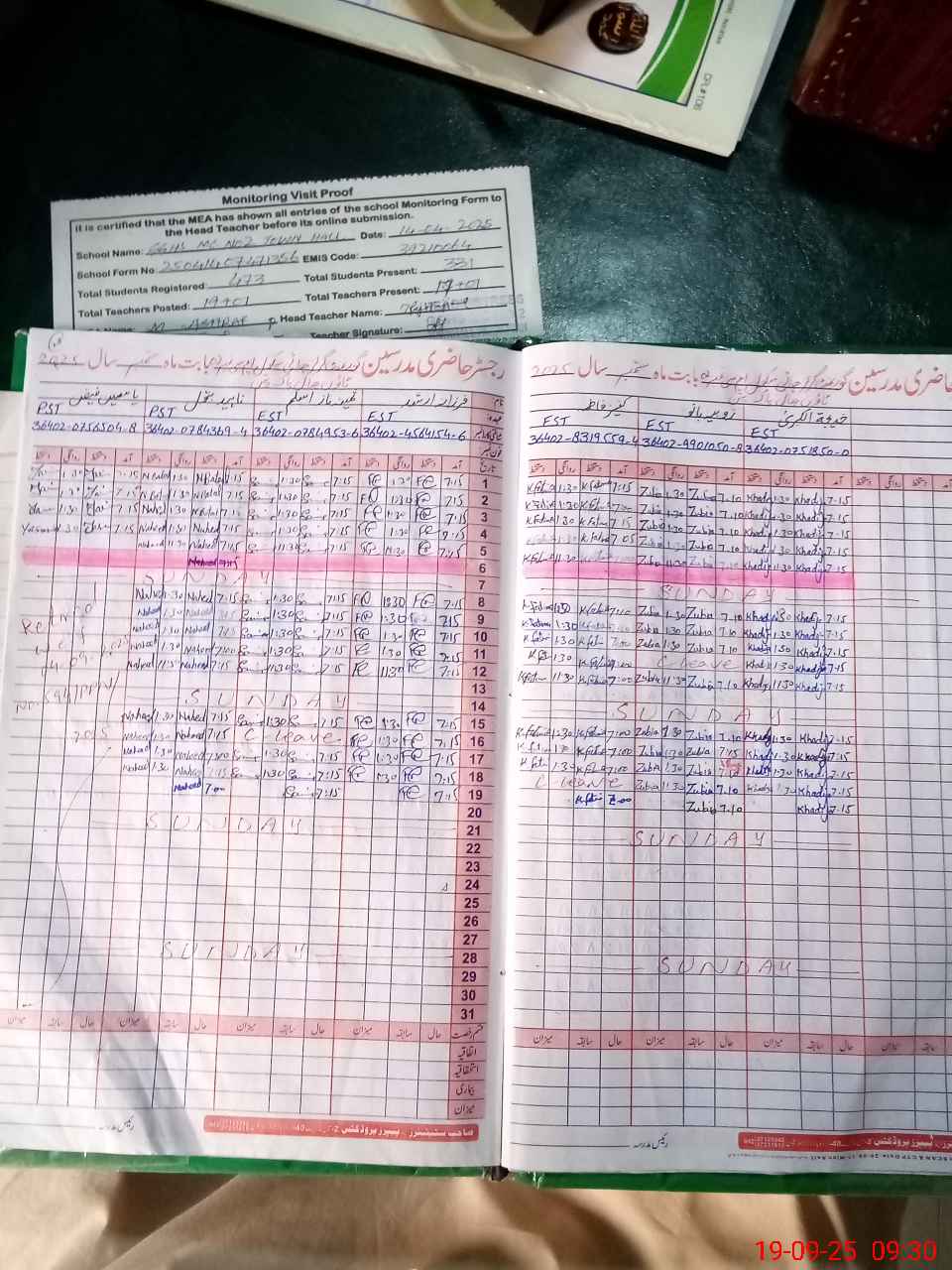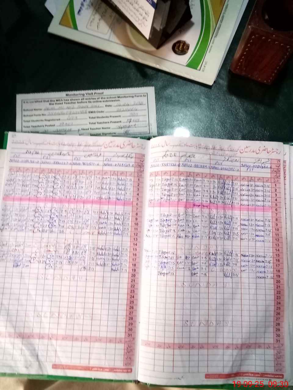 | Attendance Register | Head Teacher | MEA with School | Visit Proof |