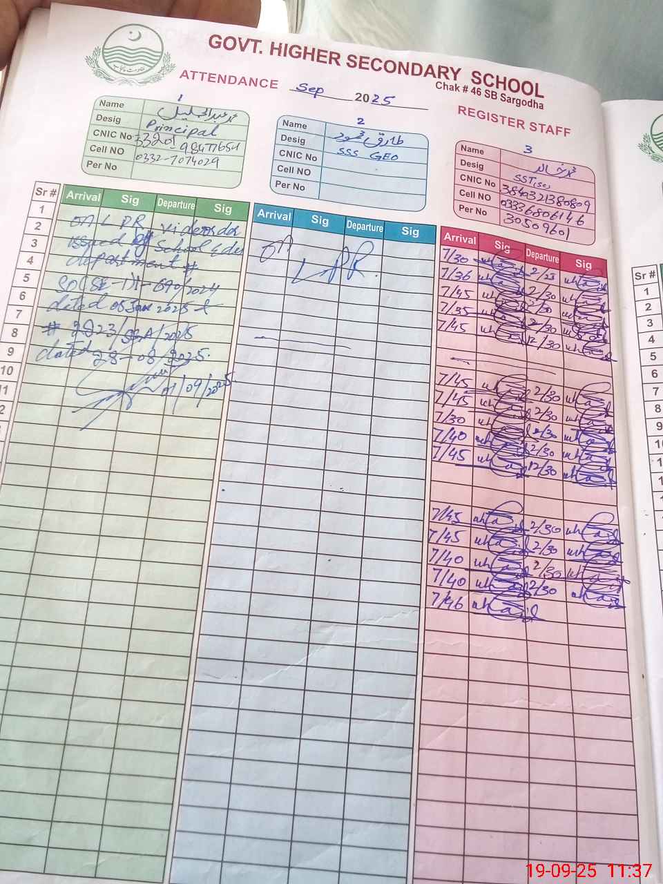 | Name: MU**** KH**** Designation: (School Headmaster's/Headmistress's) In charge HEAD SST Phone/Cell Number: 03**** |