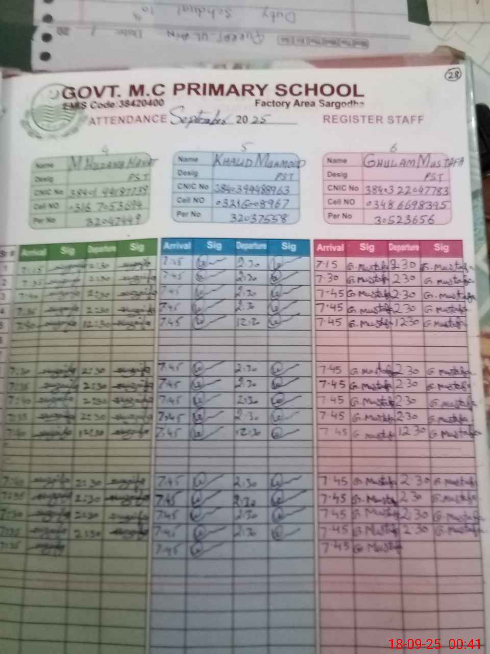 | EMIS Code: 38420400 | Name of School: GPS MC NO. 11 FACTORY AREA SARGODHA | |||