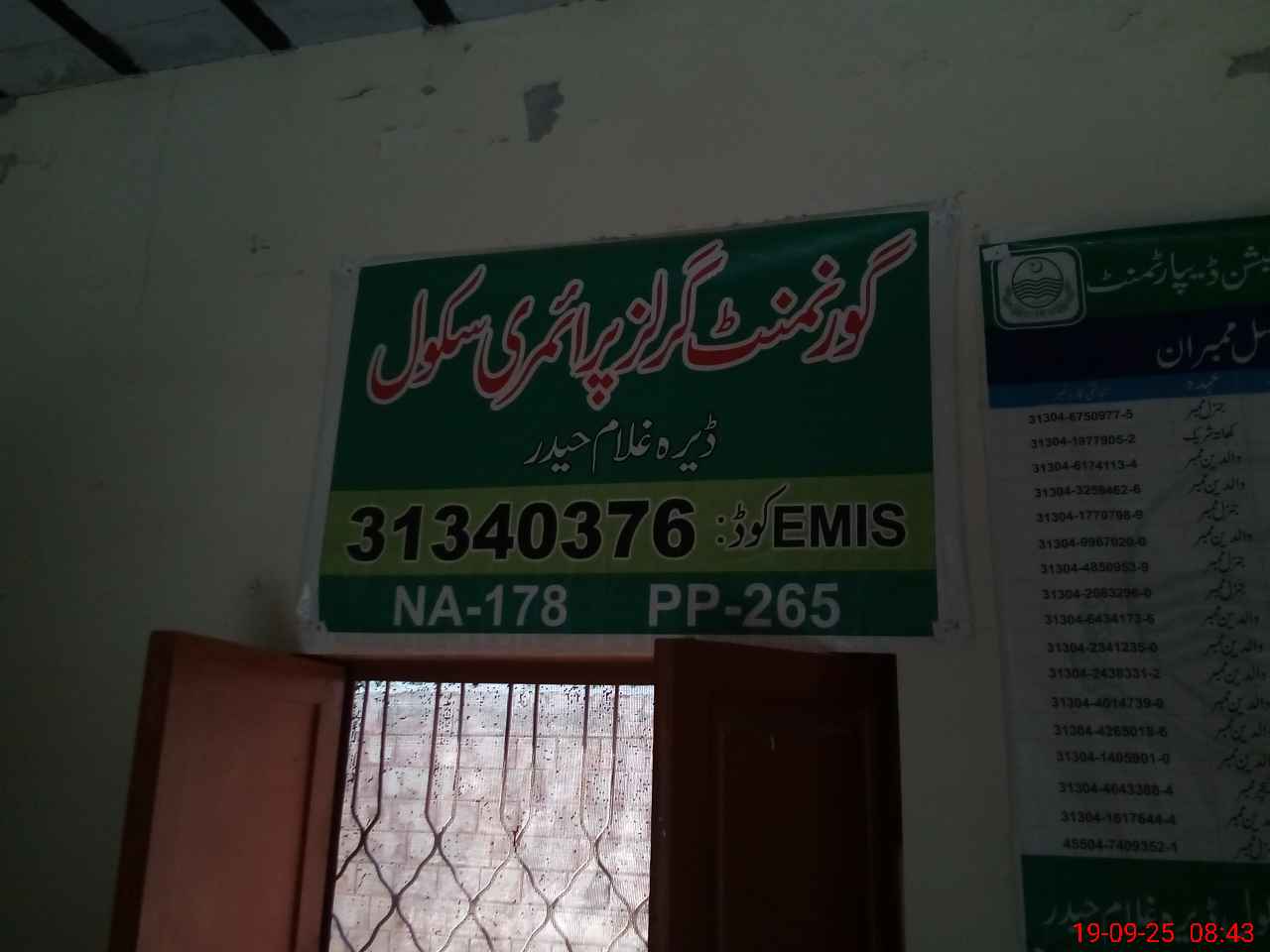 | EMIS Code: 31340376 | Name of School: GGPS DERA GHULAM HAIDER | |||