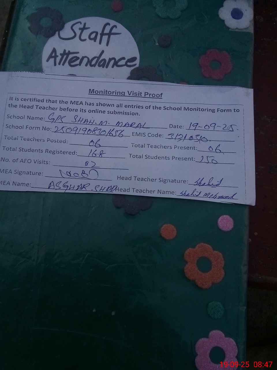 | EMIS Code: 31310310 | Name of School: GPS SHAH MUHAMMAD MARAL | |||