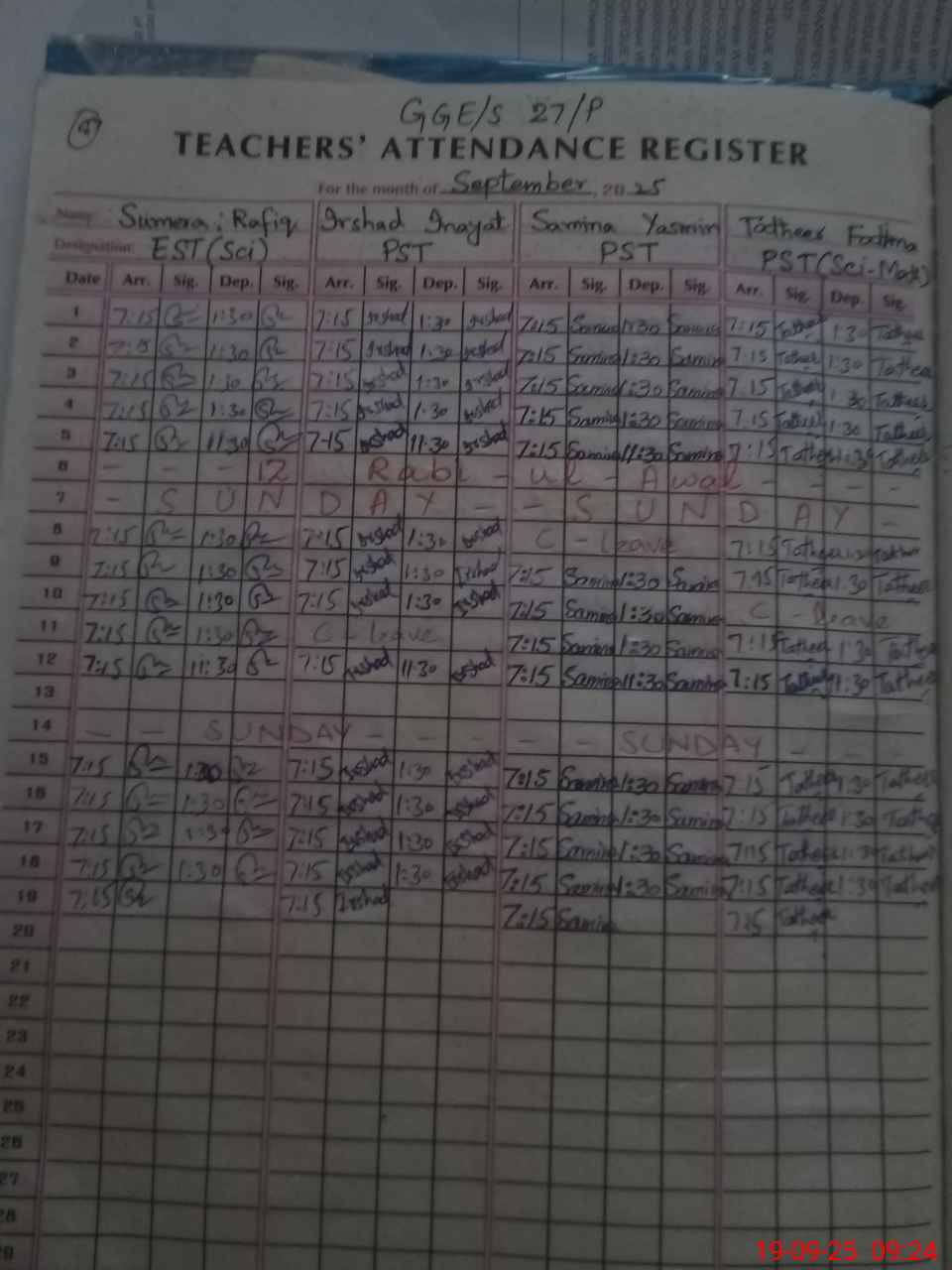 | Monitoring Date: 19-09-2025 | Start Time: 19-09-2025 09:02 AM | End Time: 19-09-2025 09:43 AM | Name of MEA: Mu**** As**** Sh**** | |