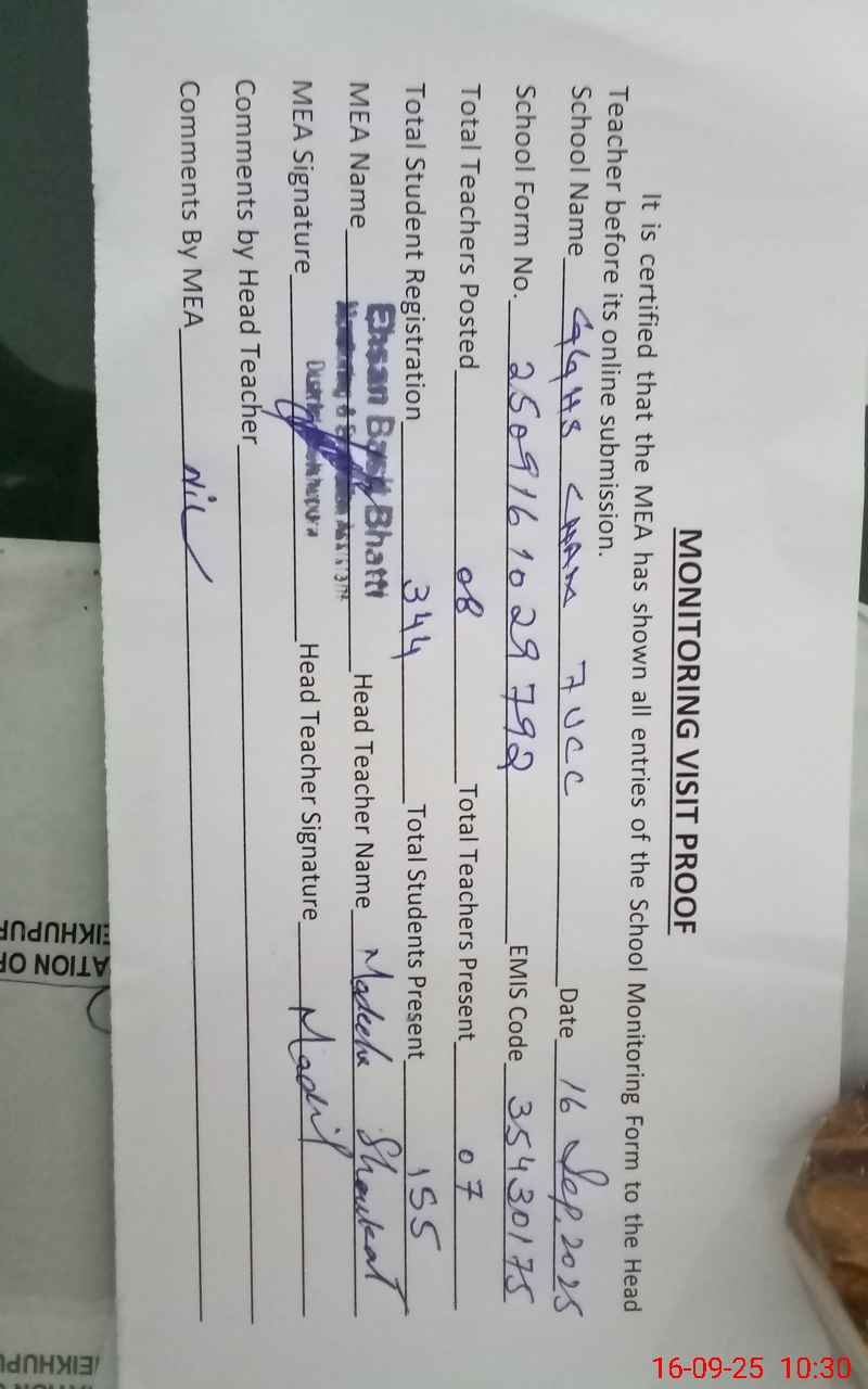 | EMIS Code: 35430175 | Name of School: GGHS CHAK 7 UCC | |||