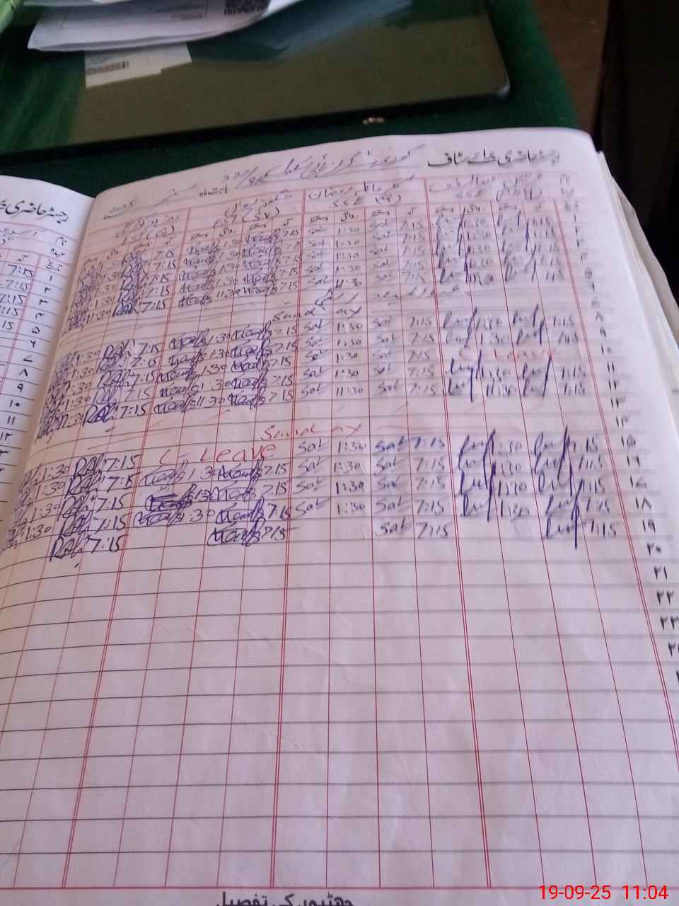 | Leave | Duty | Absent | Maternity | Medical | Ex- Pak |