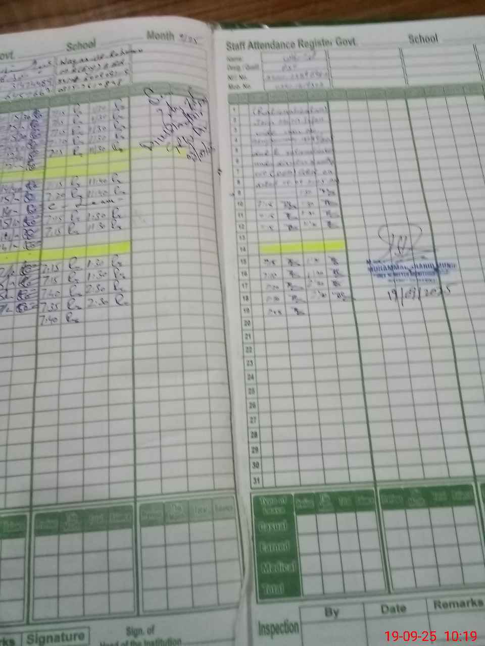 | Certified that this School was Inspected by the Undersigned MEA/DMO Today and the Information Stated Above is as Per Record. | |||||