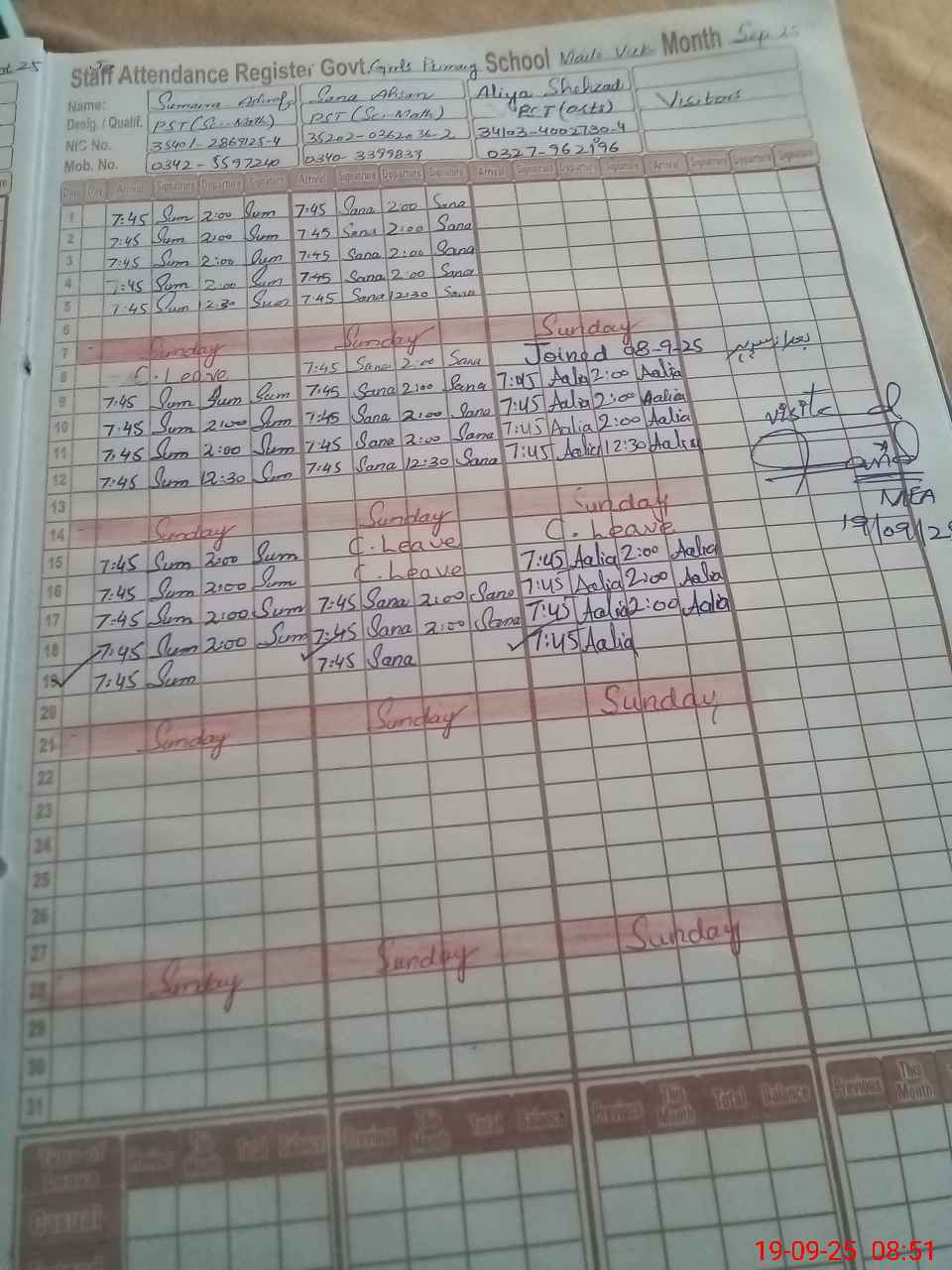 | Name: Su**** As**** Designation: (School Headmaster's/Headmistress's) PST Phone/Cell Number: 03**** |