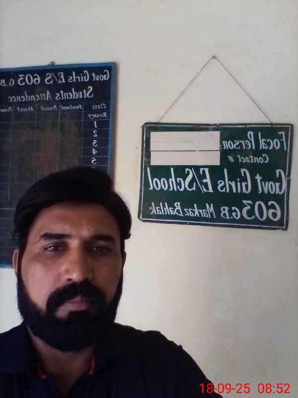 | Name: SA**** MA**** Designation: (School Headmaster's/Headmistress's) SESE (ARTS) Phone/Cell Number: 03**** |